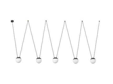 Белый подвес с тремя светильниками от Nahtrang с металлическим каркасом и рассеивателем из опалового поликарбоната. Материал и свет, проходящий через диффузор, обеспечивают тепло и комфорт в вашем доме. Эта дизайнерская подвеска является универсальной и настраиваемой, благодаря креплению на крюке, вы можете установить свет там, где вам это нужно. По своим возможностям идеально подходит для освещения контрактных помещений, а также для освещения дома.