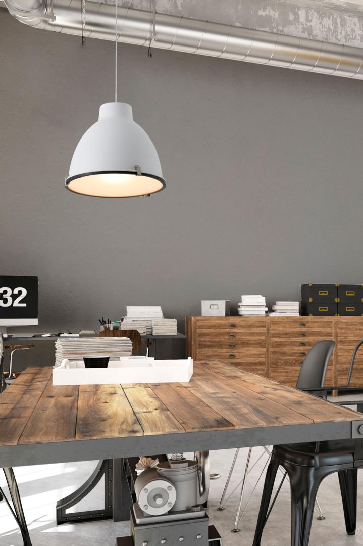 Промышленная воздушная лампа для домашнего освещения . Его колоколообразная структура и стеклянный диффузор идеально подходят для кухонь и столовых . Этот светильник придаст помещениям современный и индустриальный воздух, идеальное сочетание для интерьеров.