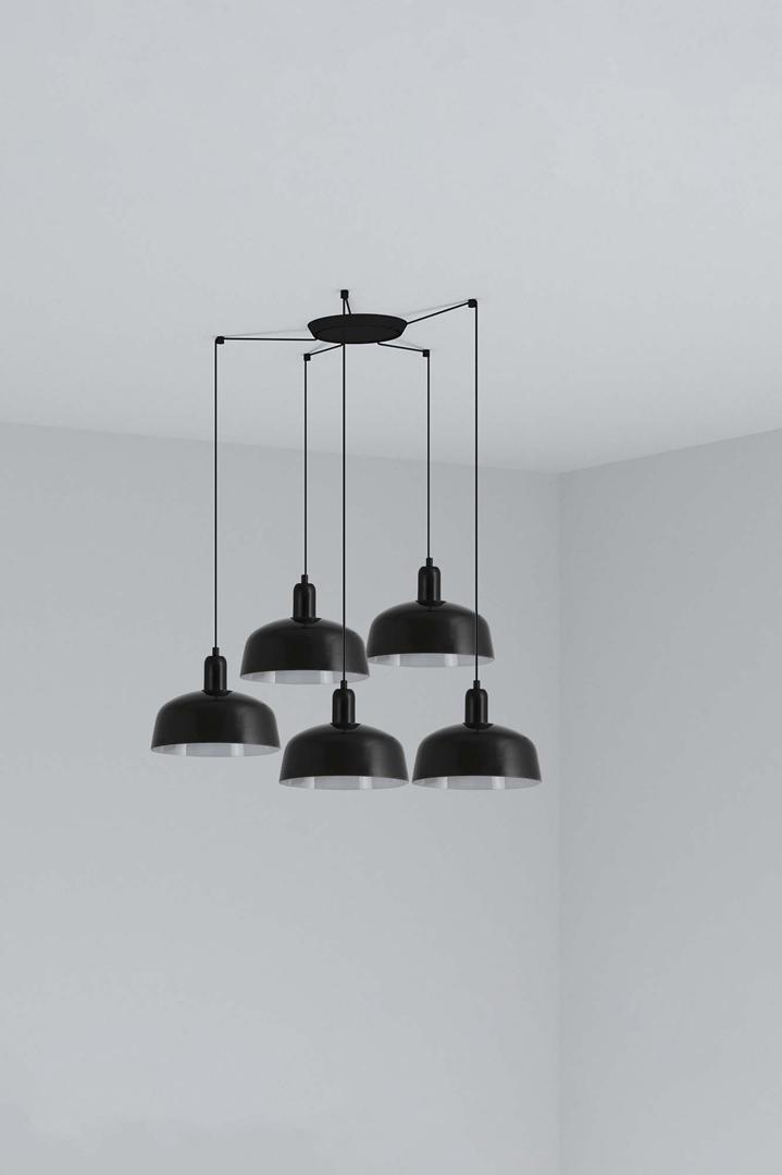 TATAWIN M — это семейство светильников, разработанное Адольфо Абейоном. Форма тени напоминает верхнюю часть характерных домов Татауина, города на юго-востоке Туниса. Он идеален для создания композиций из одной точки света как в контрактных помещениях, так и дома. Версия с абажуром из черного глянцевого стекла и несколькими потолочными розетками с 5 светильниками.