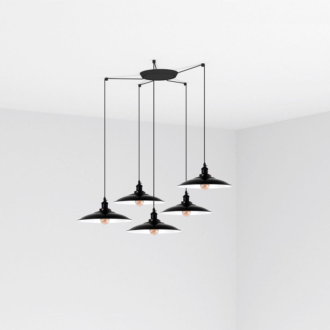 ЛАНГ — это черный подвесной светильник овальной формы. Он имеет металлическую структуру и идеально подходит для освещения больших помещений. Доступен в других цветах. Версия с несколькими плафонами на 5 ламп. Световые решения, разработанные для мировых рынков, совместимы с сетевыми напряжениями: 110–120 В и 220–240 В.
