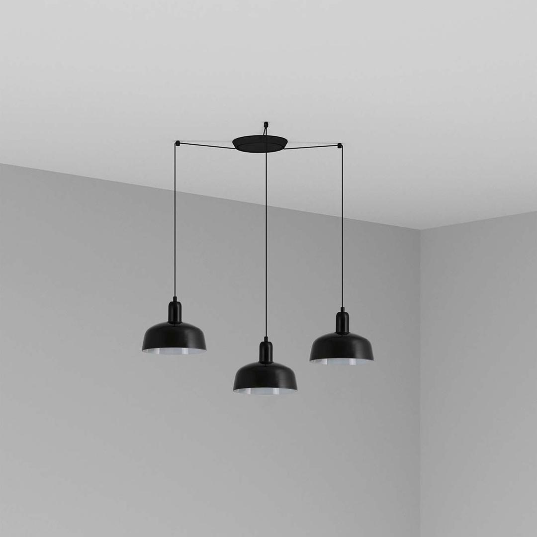 TATAWIN — это серия светильников, разработанная Адольфо Абейоном. Форма абажура напоминает верхнюю часть характерных домов Татауина, города, расположенного на юго-востоке Туниса. Этот подвесной светильник с черной конструкцией состоит из абажура из черного металла, который обеспечивает направленный свет.