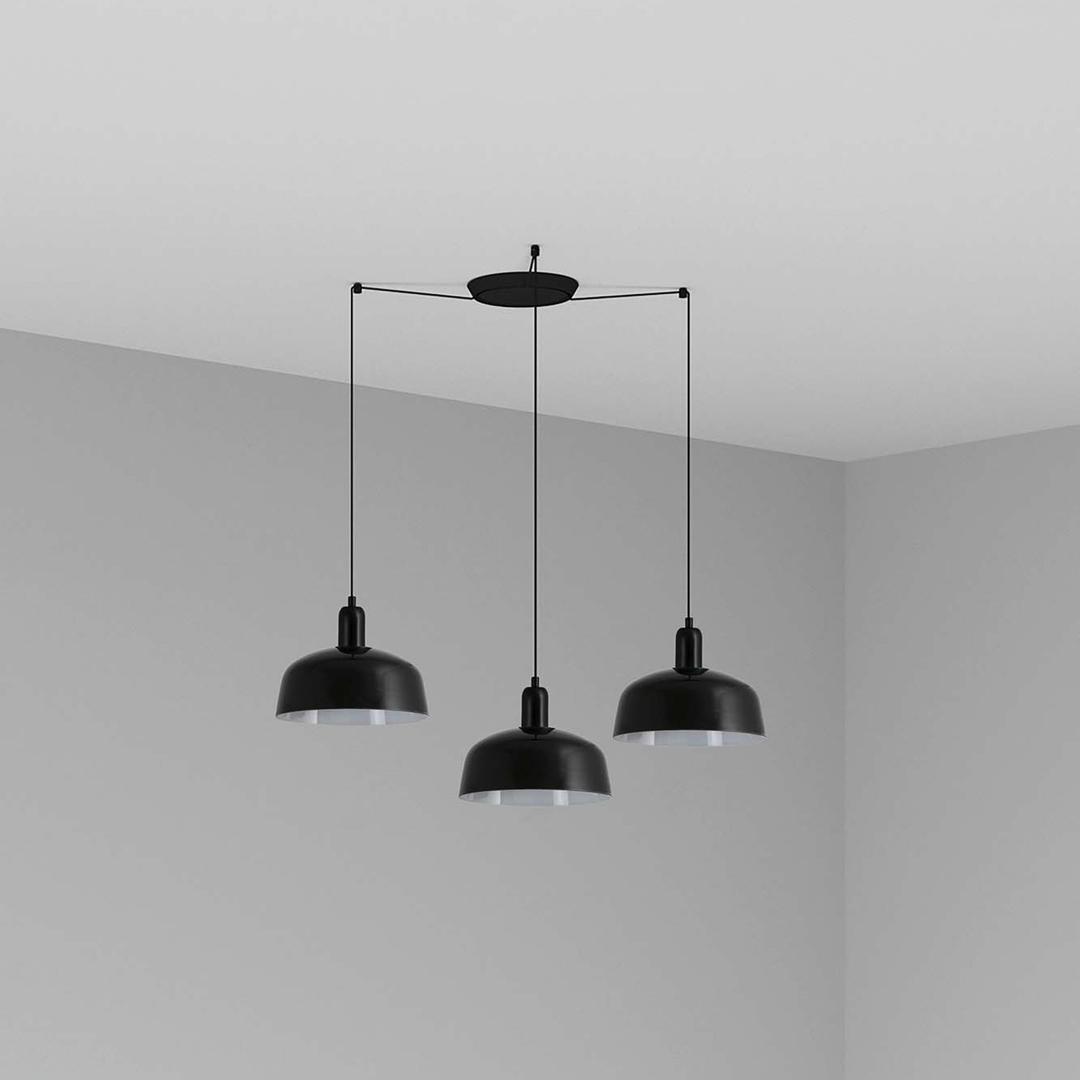 TATAWIN — это серия светильников, разработанная Адольфо Абейоном. Форма абажура напоминает верхнюю часть характерных домов Татауина, города, расположенного на юго-востоке Туниса. Этот подвесной светильник с черной конструкцией состоит из абажура из черного металла, который обеспечивает направленный свет.