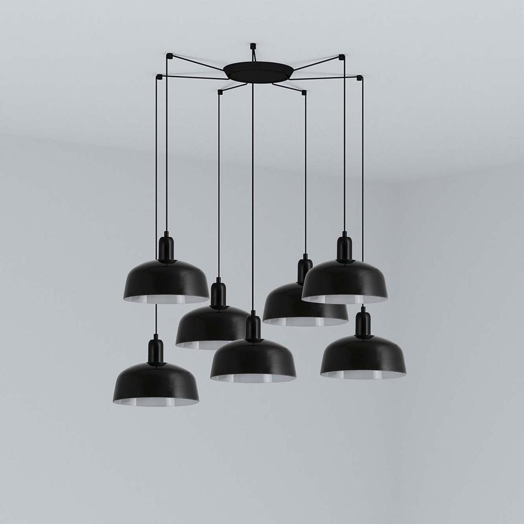 TATAWIN — это серия светильников, разработанная Адольфо Абейоном. Форма абажура напоминает верхнюю часть характерных домов Татауина, города, расположенного на юго-востоке Туниса. Этот подвесной светильник с черной конструкцией состоит из абажура из черного металла, который обеспечивает направленный свет.