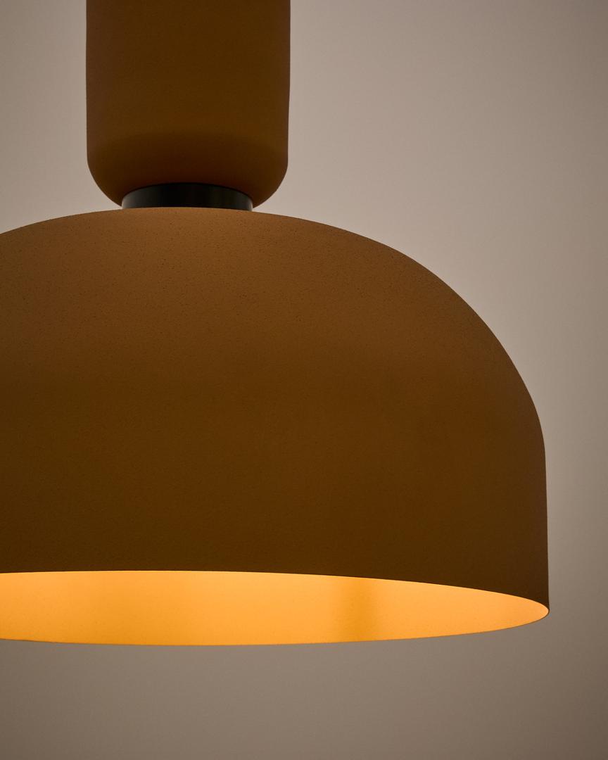 Потолочный светильник Nibla с отделкой под терракотовый эффект добавит нотку тепла и естественной элегантности в любое пространство. Его тонкий дизайн с чистыми линиями позволяет ему идеально вписаться в современные или деревенские интерьеры. Сочетание черного и эффекта глины создает визуально привлекательный контраст, который выделяется в любой обстановке, будь то гостиная, офис или уголок для чтения. Абажур лампы не только добавляет уникальный стиль, но и рассеивает свет мягким и уютным образом, создавая интимную и расслабляющую атмосферу. Эта лампа совместима с лампочками E27 мощностью до 40 Вт (не входят в комплект). Потолочный светильник Nibla выделяется не только своим дизайном, но и своей универсальностью: он легко интегрируется с остальной частью коллекции, позволяя создать гармоничное и стильное пространство. Выберите элемент освещения, который не только выполняет свою практическую функцию, но и добавляет нотку дизайна и элегантности, преображающую обстановку.