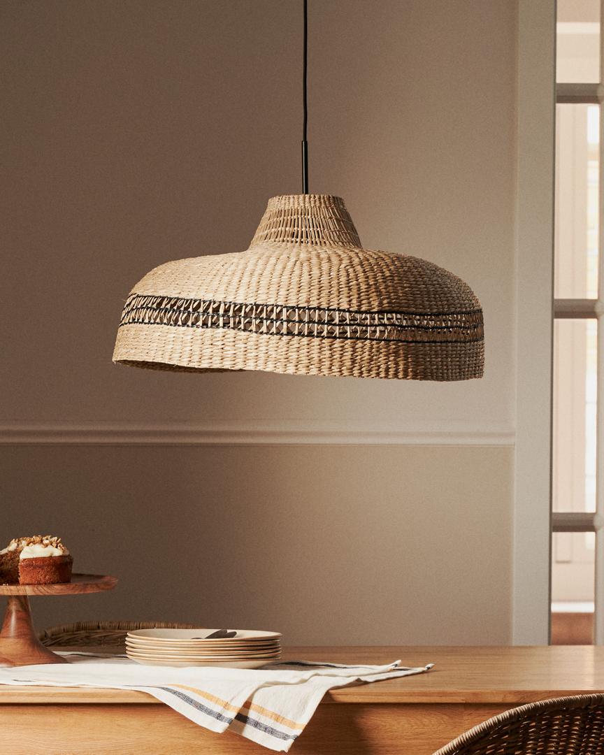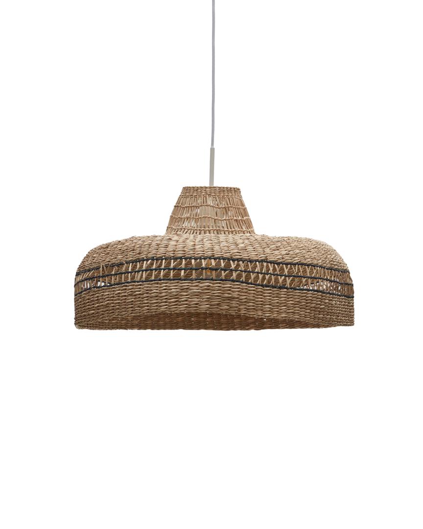 Потолочный абажур из натурального волокна с естественной и черной отделкой 55 см в диаметре. Ручное плетение с использованием ремесленных техник. Натуральные материалы с уникальными тонами и текстурами, которые делают каждое изделие уникальным. Лампочка, крепления и кабели в комплект не входят, так что вы можете настроить дизайн своей лампы на 100%.