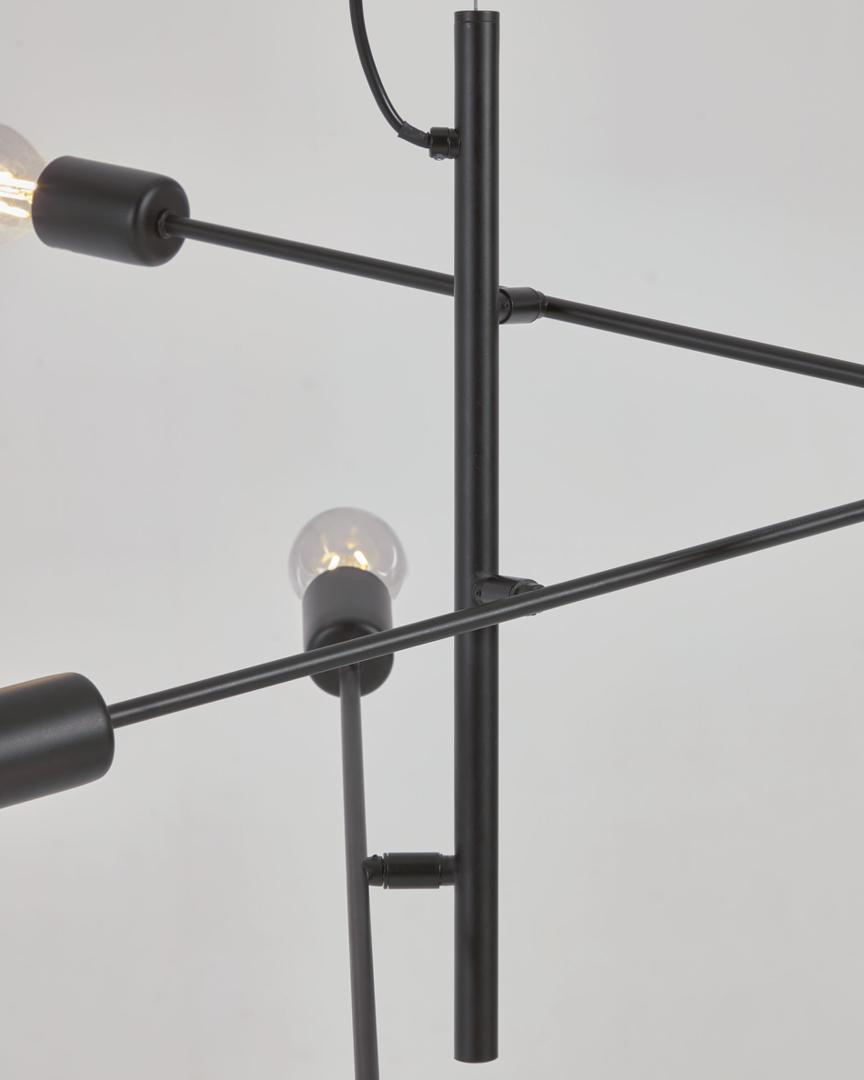 Люстра Spica от фабрики La Forma (ex Julia Grup) – громкое заявление для вашей гостиной. Люстра Spica способна быть всегда разной. Вы сможете легко перемещать ее рычаги, меняя направление света, а значит, и дизайн своего пространства. У Spica бесконечные взгляды на оформление вашего интерьера – это десятки комбинаций, которые вам понравится оценивать. Люстра имеет сборную конструкцию, которая состоит из трубки-основания шириной 1.8 см и шести рычагов шириной по 1 см. Материал изготовления – сталь с черным порошковым покрытием. На каждом рычаге – металлический патрон, в который вкручивается энергосберегаюшая лампа с характеристиками: цоколь – Е27, мощность – 60 Вт, класс энергопотребления – Е-А++, максимальная энергоэффективность – A++. Из трубки выходит кабель длиной 90 см. Он также черный, с пластиковым покрытием. За счет него возможна регулировка общей длины лампы от 45 до 135 см. Место крепежа с потолочной проводкой закрывает круглая коробка шириной 10 см. Размеры светильника: ширина – 55 см, высота – 45 см. Вес – 1,3 кг. Сборка не требуется.