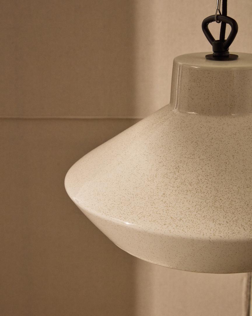 Потолочная лампа Portol из бежевой керамики — это изделие, сочетающее элегантность и простоту в неподвластном времени дизайне. Её прочная, но изящная конструкция, изготовленная из глазурованной керамики, отличается уникальными оттенками, которые немного отличаются у каждой лампы, что делает каждую из них эксклюзивным предметом. Глазурь придаёт изделию тёплый оттенок, который идеально вписывается в современный, деревенский или минималистичный интерьер. Совместимая с лампочками E27 мощностью до 40 Вт (не входят в комплект), эта лампа обеспечивает мягкое и приятное освещение, идеально подходящее для создания уютной атмосферы в любом помещении вашего дома, от столовой до спальни. В дополнение к этому элегантному бежевому оттенку, он также доступен в изысканном зеленом цвете, предлагая универсальные варианты для различных стилей оформления. Придайте вашему дому нотку индивидуальности с помощью этой лампы, которая выделяется своим характером и дизайном, придающим освещению стиль и теплоту.