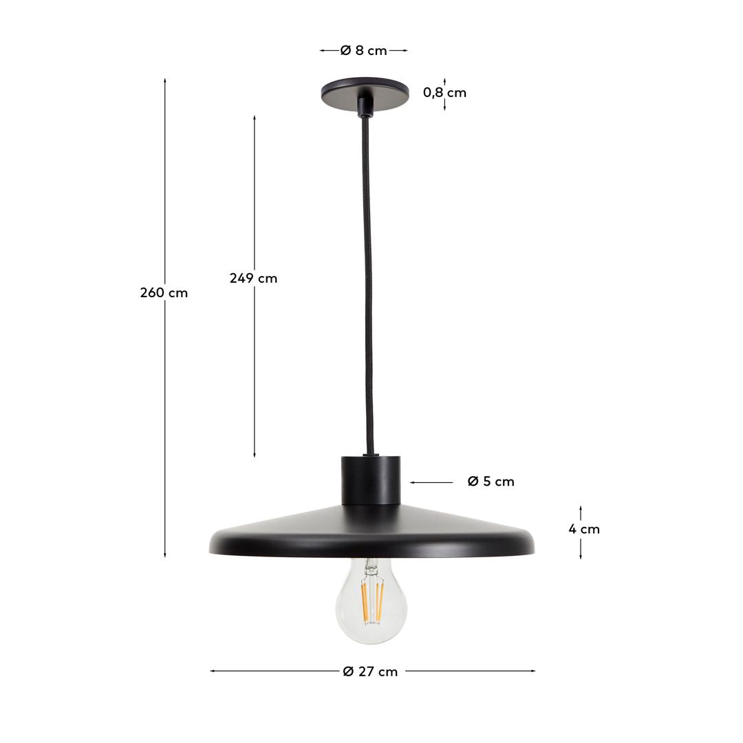 Потолочный светильник из сатинированного металла. Очень мягкий черный тканевый кабель. Совместим с лампами E27 мощностью до 40 Вт. Продается отдельно.