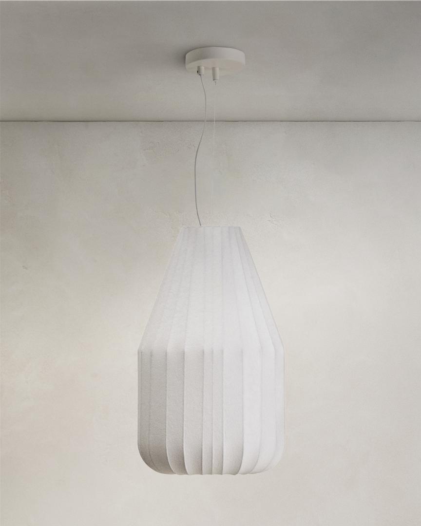 Эта коллекция потолочных светильников отличается инновационным дизайном. Абажур изготовлен из синтетических волокон, напылённых на основание из вращающихся стальных стержней. В результате получается геометрически чёткий светильник, сочетающий в себе современный стиль и одновременно лёгкую классическую атмосферу, идеально подходящий для любого интерьера. Сочетание материалов и технологий изготовления обеспечивает мягкое и деликатное освещение, создавая уютную и обволакивающую атмосферу в любом помещении.