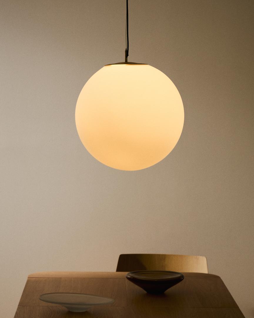 Brisia сочетает геометрию и элегантность в современном дизайне, отличающемся балансом материалов и форм. Металлический каркас с отделкой из матовой латуни добавляет изысканности, а сферический абажур из матового стекла смягчает свет, создавая обволакивающее и уютное освещение. Универсальный дизайн позволяет легко интегрировать светильник в различные пространства, добавляя индивидуальности и стиля. Светильник совместим с лампами E27 мощностью до 25 Вт (приобретаются отдельно). Он идеально подходит для тех, кто ищет функциональный светильник с изысканным и вневременным дизайном.