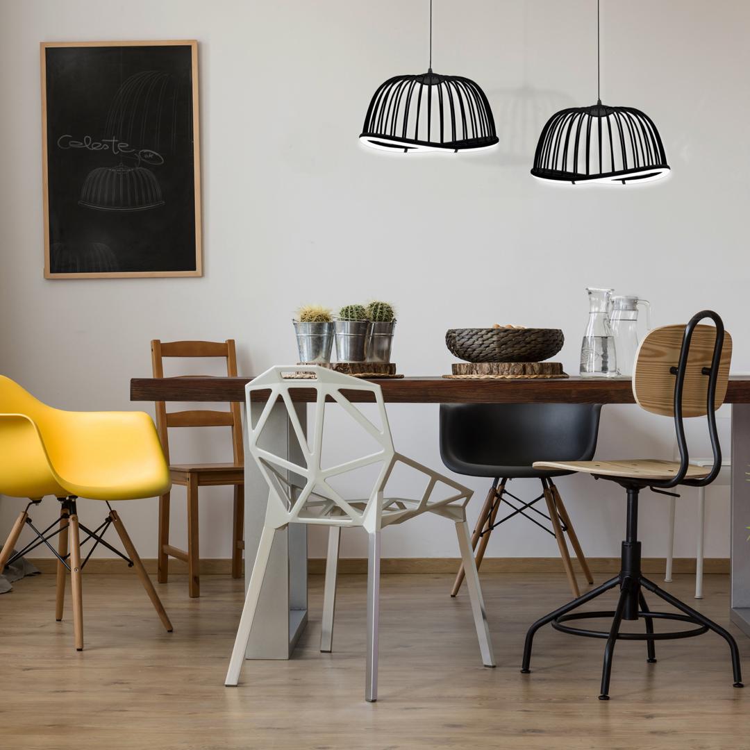 Дизайн CELESTE вдохновлен астрологией и космическими телами. Подобно линии, образующей орбиту, луч света светильника может напоминать траекторию движения небесного тела. Полая полусферическая алюминиевая конструкция имеет диффузор, который обеспечивает разнонаправленное рассеивание света светодиода 3000K. Воздушная конструкция CELESTE впишется как в самый смелый и современный интерьер, так и в уютный и самый простой. Коллекция представлена в трех размерах, что позволяет подобрать идеальное световое решение под любой размер комнаты. Также подвесные светильники доступны в черной и белой отделке, делая предмет нейтральным и универсальным.