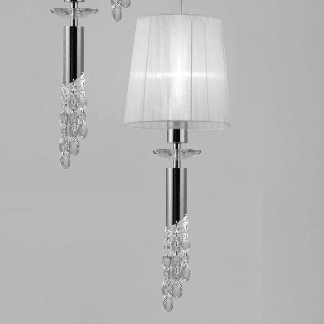 TIFFANY - это безусловно великолепная и редкая по своей необычности коллекция. Роскошные светильники пронизывают полупрозрачные блики нитей абажура, наряду с искрами хрустальных камней, даря индивидуальность вашему освещению. Она сочетает в себе патроны для ламп E27 или E14 на верхнем уровне, которые сопровождаются сдержанными патронами ламп G9, размещенными на нижнем уровне. Это ловкое дизайнерское решение усиливает блеск хрустальной резьбы TIFFANY, а также освещает нижние поверхности. Полная коллекция доступна в полированном хроме с белыми абажурами и в античной латуни с мягким кремовым оттенком абажуров. С возможностью широкого выбора отделки Mantra создается гибкость для подбора идеального светового решения под нужды и стиль вашего интерьера. Предметы коллекции TIFFANY идеально дополнят интерьер, выполненный в классическом стиле. Из-за своей фигурной резьбы на стеклянных абажурах предметы коллекции будут выигрышно выделяться в широком пространстве с большими окнами, отражая солнечные лучи.