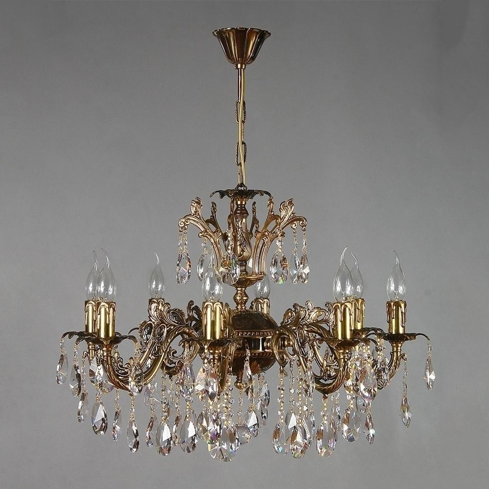 Люстра, выполненная из латуни в блестящей бронзовой отделке с прозрачными подвесками в форме капли из хрусталя Asfour.
