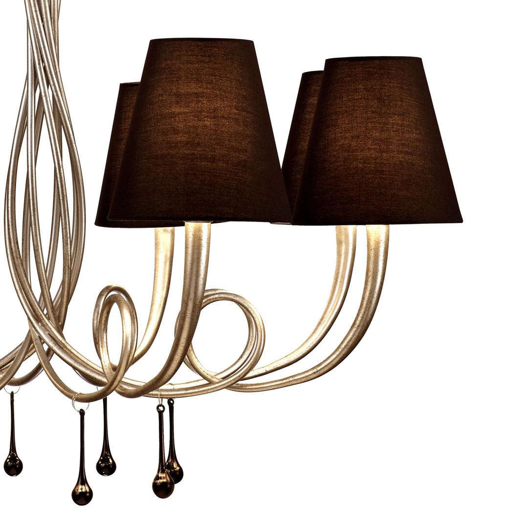 Коллекция Paola это сочетание сложных и элегантных линий с извилистыми металлическими структурами, украшенными золотом и серебром и увенчанными стеклянными каплями коньячного или черного цвета. Полупрозрачные абажуры черного или белого цвета, передают тепло, дополняя коллекцию приятной гармонией в классическом дизайне.
