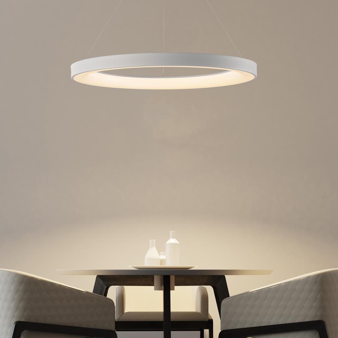NISEKO - это современный и эффективный дизайн света. В его максимально упрощенной форме выражается влияние минимализма. В конструкции использована белая металлическая лента для обрамления светодиодов 3000K, которые рассеиваются на внутренней стороне кольца. Благодаря, этому строению создается приятный эффект мягкого ореола света. NISEKO поддержит атмосферу спокойствия и медитативность в вашем доме и впишется в самые разнообразные интерьеры, благодаря своей стилистической универсальности. Сочетание круглой формы и мягкого внутреннего освещения создают домашнюю личную атмосферу. Подвесные светильники коллекции выпускаются в трех различных диаметрах, увеличивая мощность в зависимости от размера. NISEKO может быть комфортно размещен в пространстве просторной гостиной зоны в сочетании с натуральными материалами, такими как дерево.