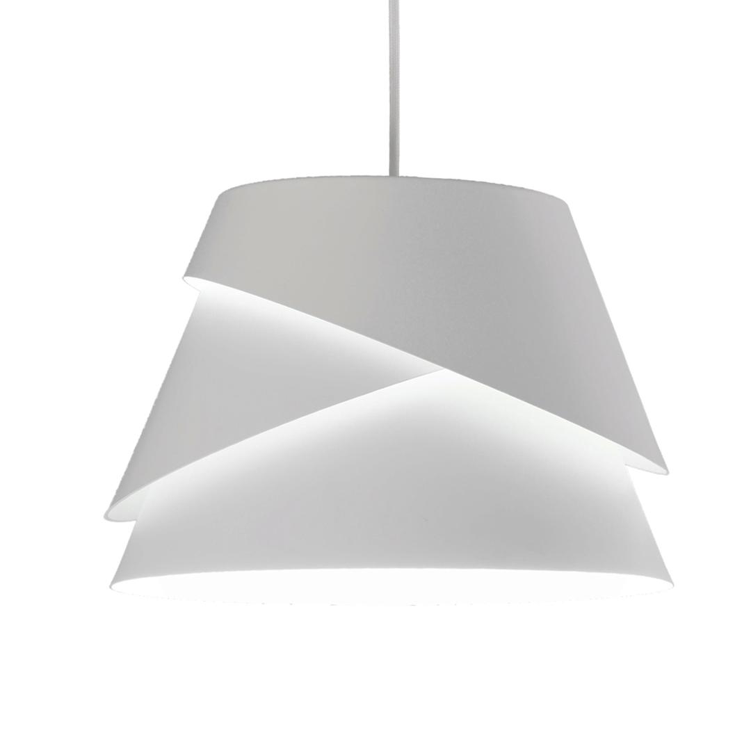 Светильник Alborаn, выполненный в белом цвете, воплощает в себе случайное движение морской волны и отражений, создаваемых проекцией, которая пропускает свет между металлических экранов разного размера.