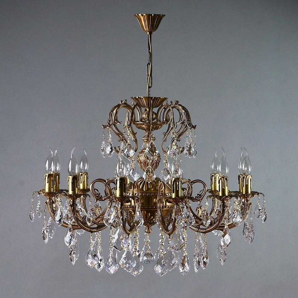 Люстра, выполненная из латуни в матовой бронзовой отделке с подвесками в форме листа из хрусталя Asfour.
