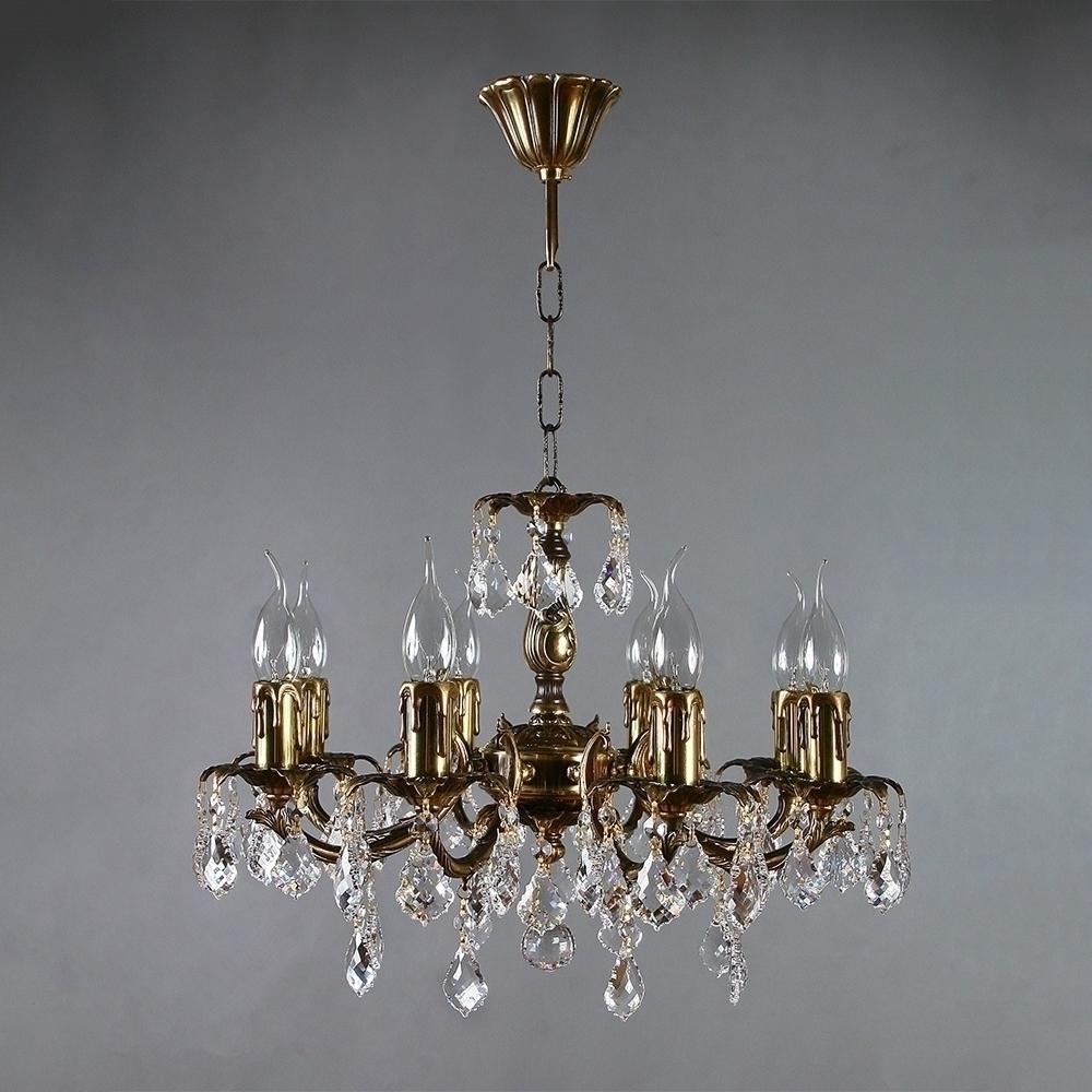 Люстра, выполненная из латуни в блестящей бронзовой отделке с прозрачными подвесками в форме листа из хрусталя Asfour.
