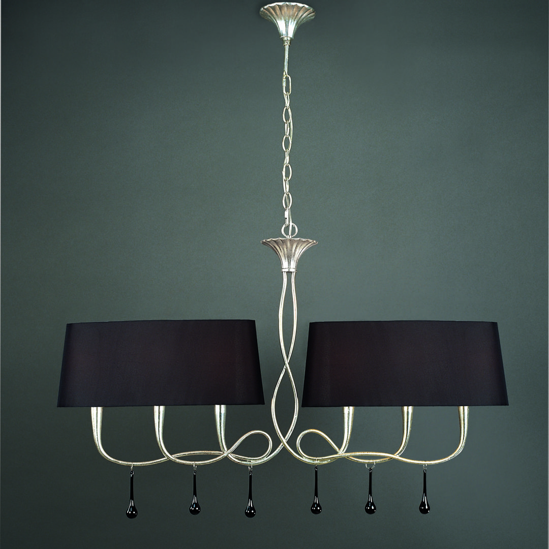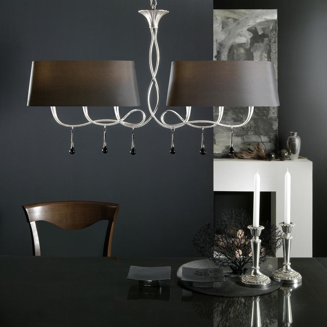 Коллекция Paola это сочетание сложных и элегантных линий с извилистыми металлическими структурами, украшенными золотом и серебром и увенчанными стеклянными каплями коньячного или черного цвета. Полупрозрачные абажуры черного или белого цвета, передают тепло, дополняя коллекцию приятной гармонией в классическом дизайне.
