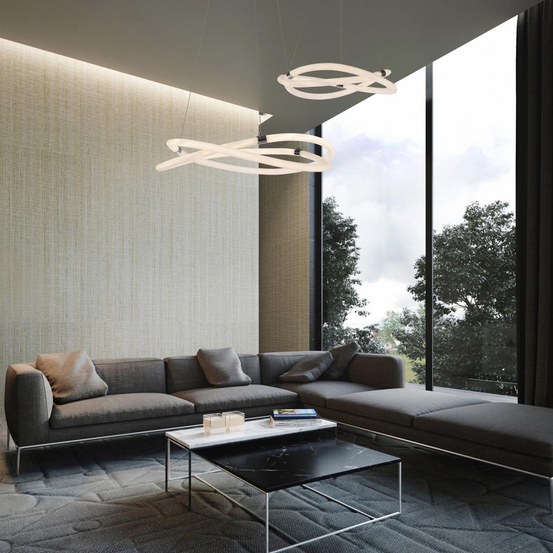 Люстра Infinity Line представляет собой светодиодную систему освещения, включает акриловый корпус с рассеивающим отверстием, которое распространяет однородно весь внутренний световой поток на 360 градусов.