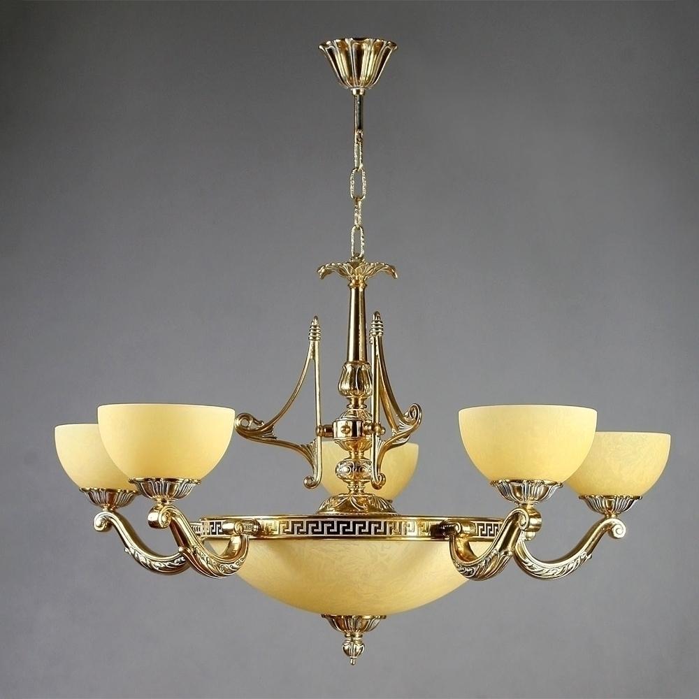 Люстра, выполненная из латуни в отделке "белая патина" с плафонами из стекла.