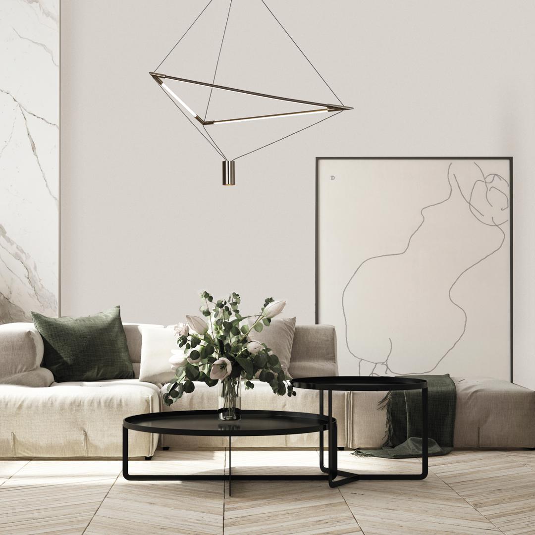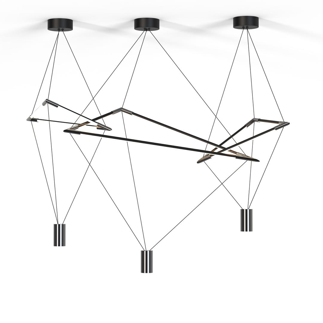 Понятие “архитектурного света” компания Мантра воплотила в подвесной серии Electra. Изящный и геометричный светильник состоит из светового треугольника неправильной формы, дающего равномерный свет, ниже, словно утяжелитель, расположен металлический цилиндр-светильник с направленным светом. Тонкие тросовые системы крепления и формообразования делают его воздушным и парящим в воздухе. Он заполняет собой подпотолочное пространство и напоминает скорее арт-объект. Серия предлагает разные размеры световых треугольников и композиции из них. Графичное сочетание черных и никелированных элементов делают его заметным в любом современном интерьере. Electra идеально впишется в гостиные, спальни, коридоры, столовые и кабинеты. Собирая в композиции подвесы, вы безусловно сделаете также авторскими общественные интерьеры офисов и ресторанов.