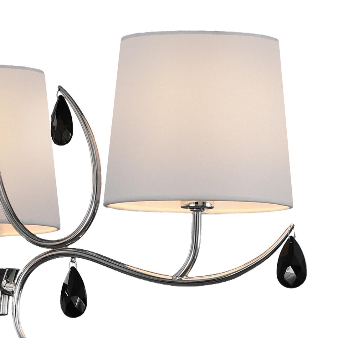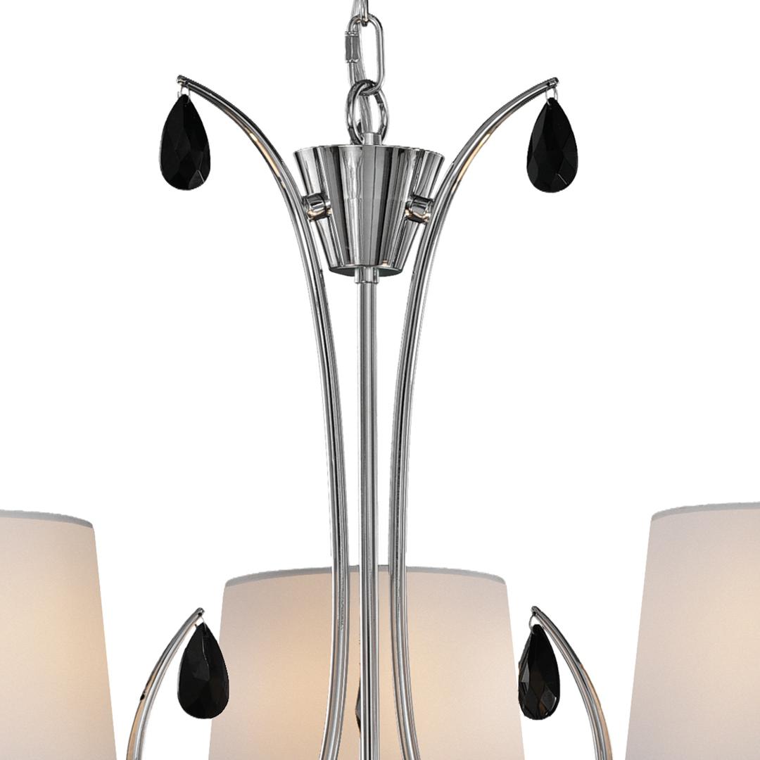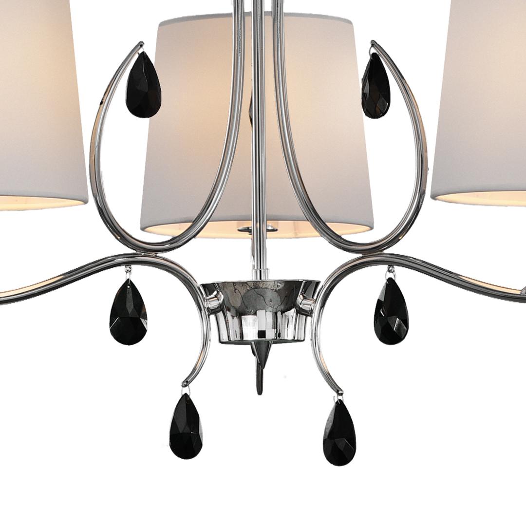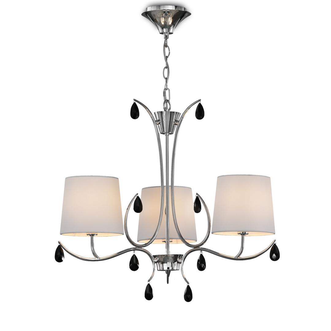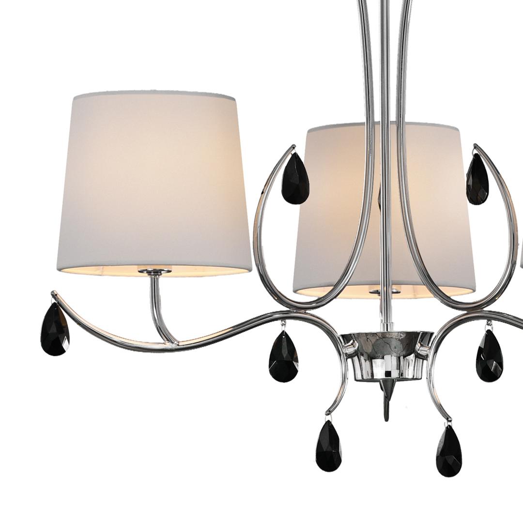 Люстра Andrea, выполненная из металла в современном прочтении классики. Тканевые плафоны выгодно оттеняются конструкцией из античной латуни, украшенной прозрачными хрустальными каплями, так же как вариант в цвете хром с черным хрусталем.