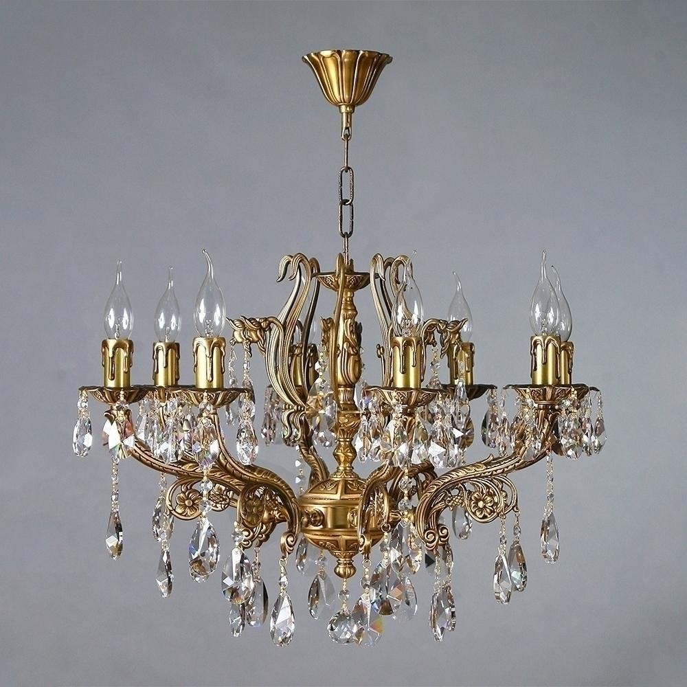 Люстра, выполненная из латуни в матовой бронзовой отделке с подвесками в форме капли из хрусталя Asfour.