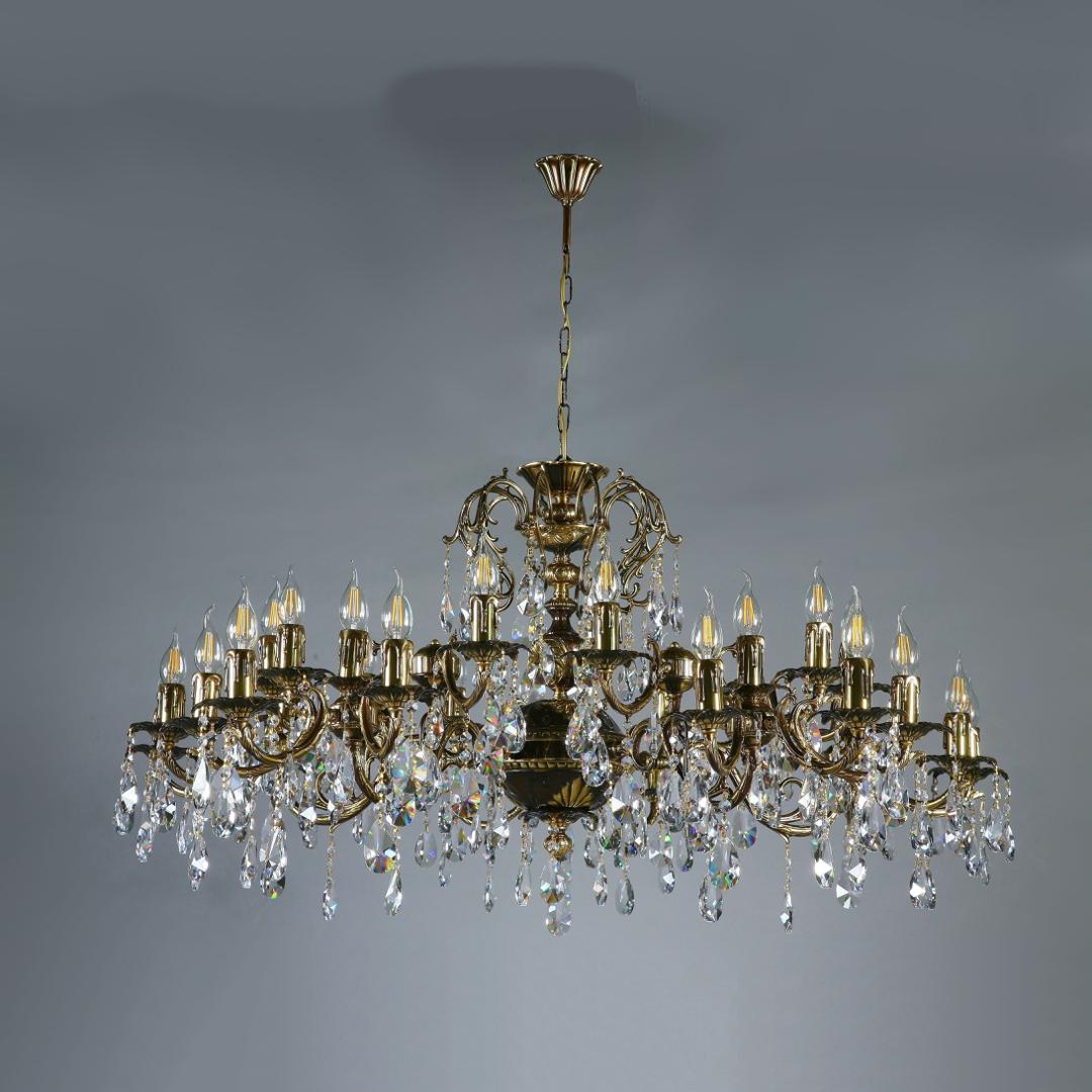 Люстра, выполненная из латуни в блестящей бронзовой отделке с прозрачными подвесками в форме капли из хрусталя Asfour.