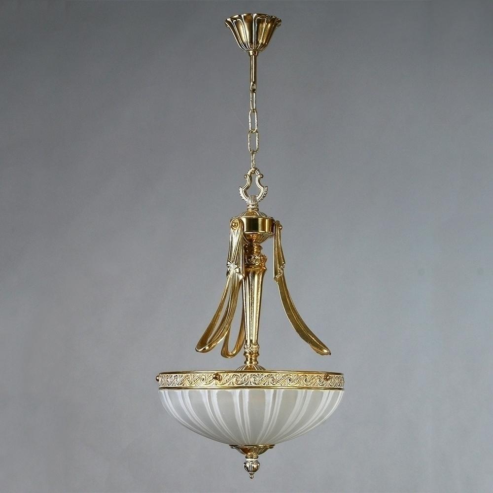Люстра, выполненная из латуни в отделке "белая патина" с плафоном из стекла белого цвета.