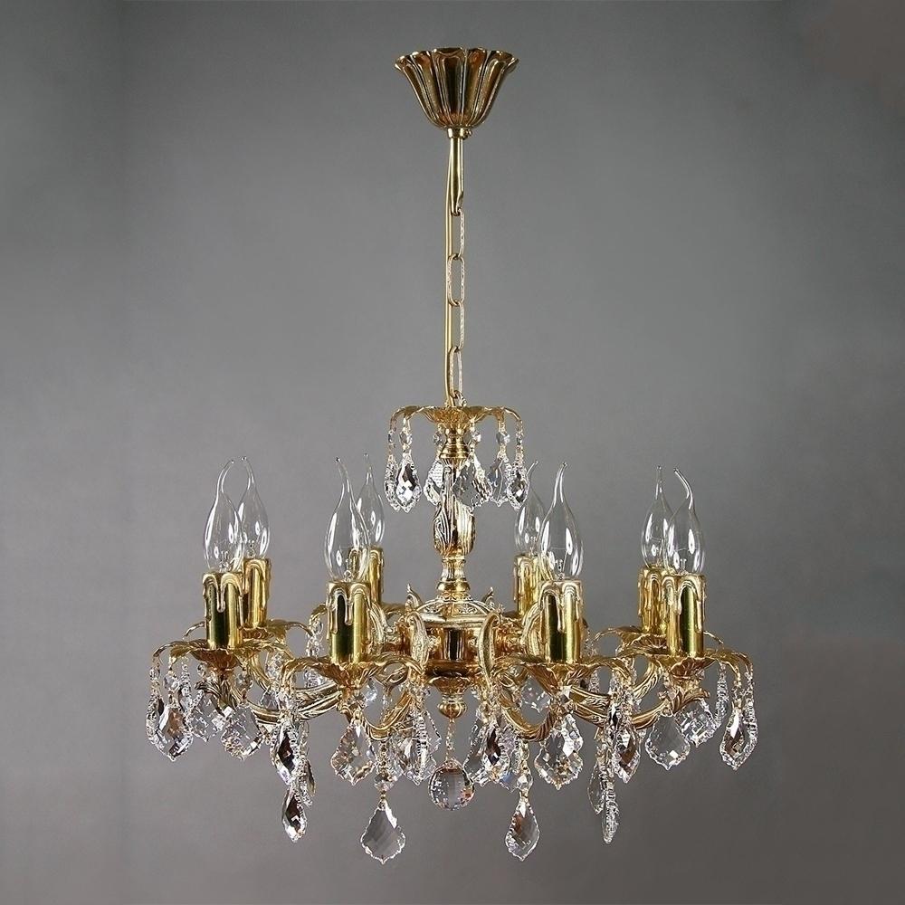Люстра, выполненная из латуни в отделке "белая патина" с подвесками в форме листа из хрусталя Asfour.