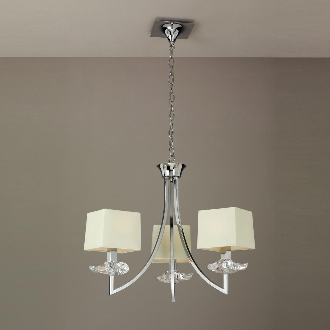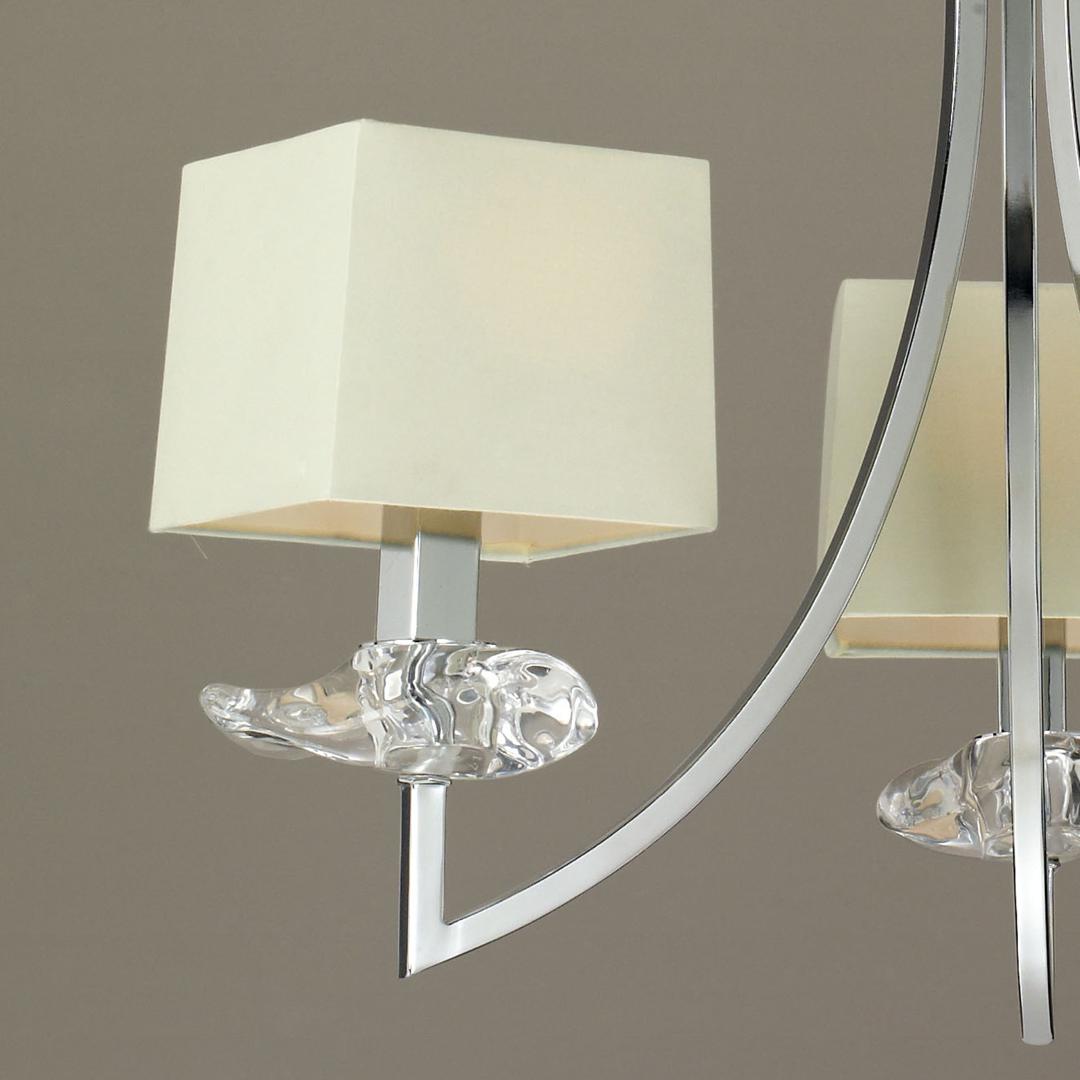 Коллекция изысканного освещения Akira cочетает рассеянный свет, который излучают хромированные и сделанные из аморфного прозрачного стекла детали. Кремовые и черные тканевые абажуры выполнены в разных форматах и размерах.