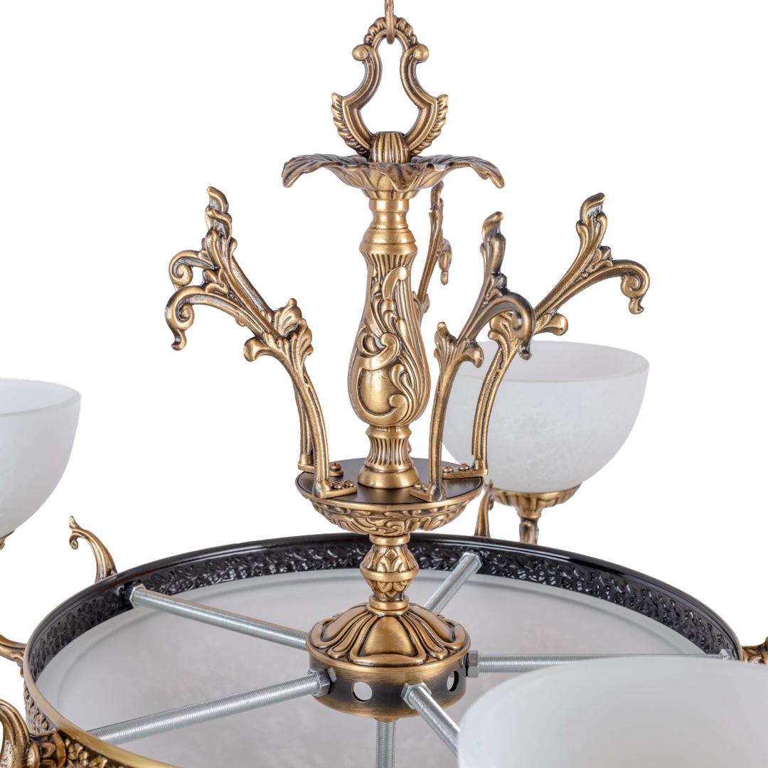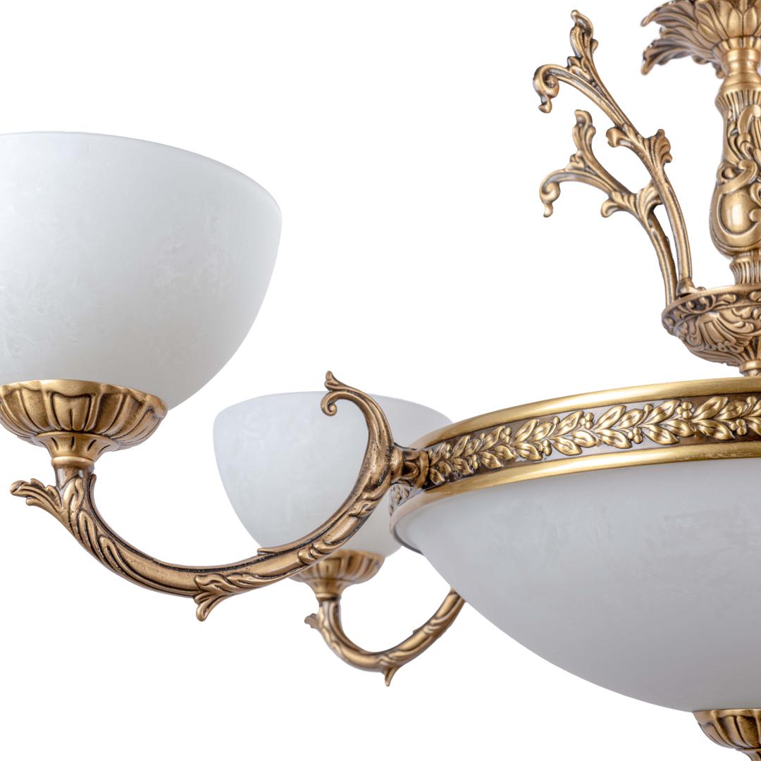 Ambiente - изысканность в каждой детали Представляем коллекцию светильников, где каждая модель — это воплощение элегантности и утончённого вкуса. В основе дизайна — благородный латунный корпус в двух изысканных вариантах отделки: матовая бронза, придающая теплоту и сдержанность, и блестящая бронза, которая добавляет блеска и торжественности. Люстры из коллекции станут центральным элементом любого интерьера. Их плафоны из матового стекла мягко рассеивают свет, создавая уютную атмосферу. Завитки и орнаменты латунного каркаса напоминают о классических традициях, но при этом выглядят современно и стильно. Такие люстры идеально дополнят гостиную, столовую или зал для приёмов. Бра из этой серии — это не просто источник света, а декоративный акцент на стене. Компактные, но выразительные, они подчеркнут индивидуальность спальни, прихожей или кабинета. Сочетание латуни и стекла создаёт гармоничный баланс между роскошью и лаконичностью. Потолочные светильники порадуют своей практичностью и эстетикой. Они компактны, но при этом обеспечивают равномерное освещение. Благодаря лаконичным формам и благородному материалу подойдут для кухонь, коридоров и ванных комнат. Торшеры из коллекции — это сочетание функциональности и стиля. Их латунные основания выглядят массивно и надёжно, а стеклянные плафоны добавляют лёгкости. Такие торшеры станут отличным дополнением к зоне отдыха, библиотеке или спальне. Настольные лампы — завершающий штрих в оформлении интерьера. Их компактные размеры позволяют разместить лампу на прикроватной тумбе, рабочем столе или журнальном столике. Тёплый свет и изысканный дизайн создадут атмосферу уюта и спокойствия. Эта коллекция — идеальный выбор для тех, кто ценит классику с современным акцентом. Латунь и стекло в сочетании с продуманными деталями превращают каждый светильник в произведение искусства, способное украсить любой дом. Добавьте нотку роскоши в свой интерьер уже сегодня!