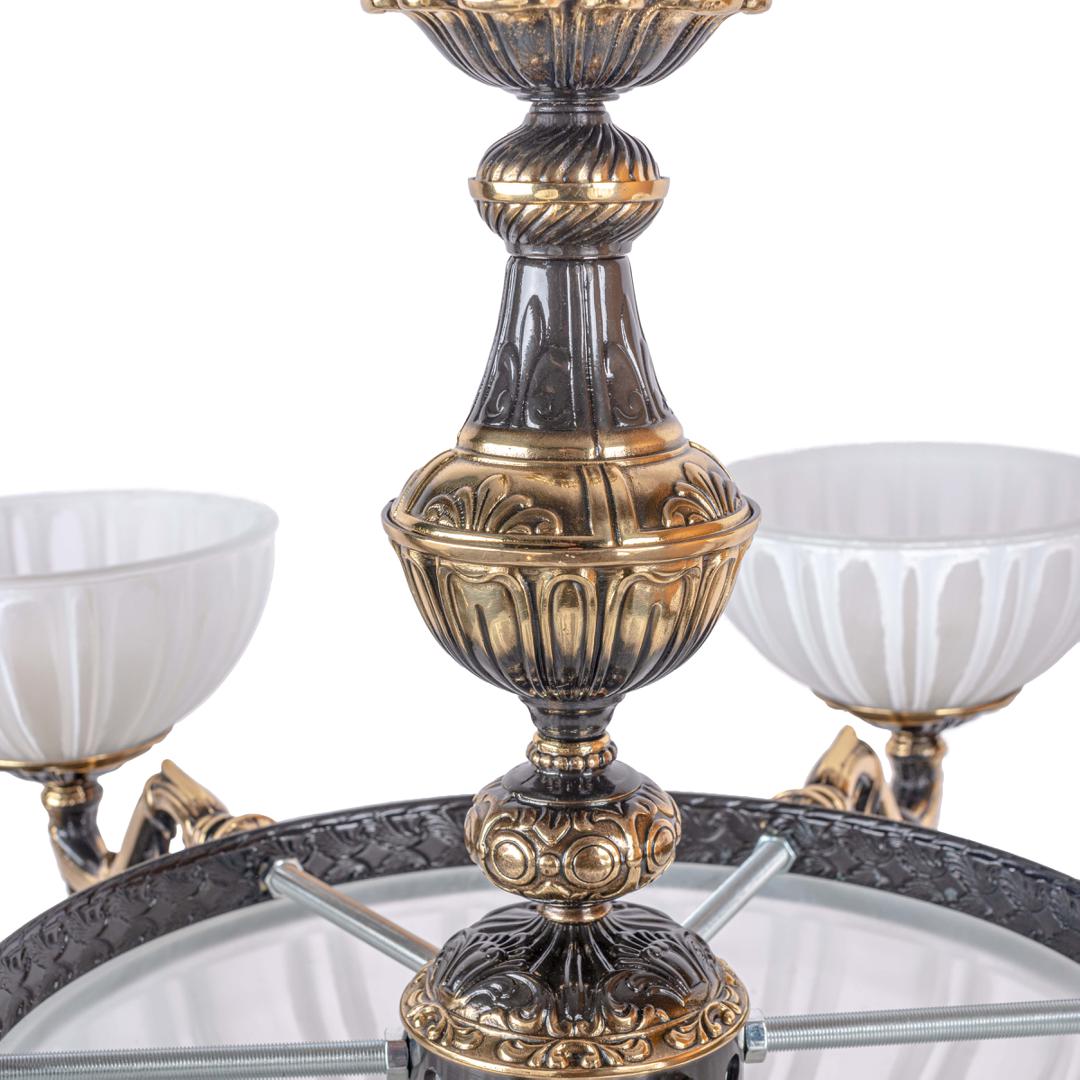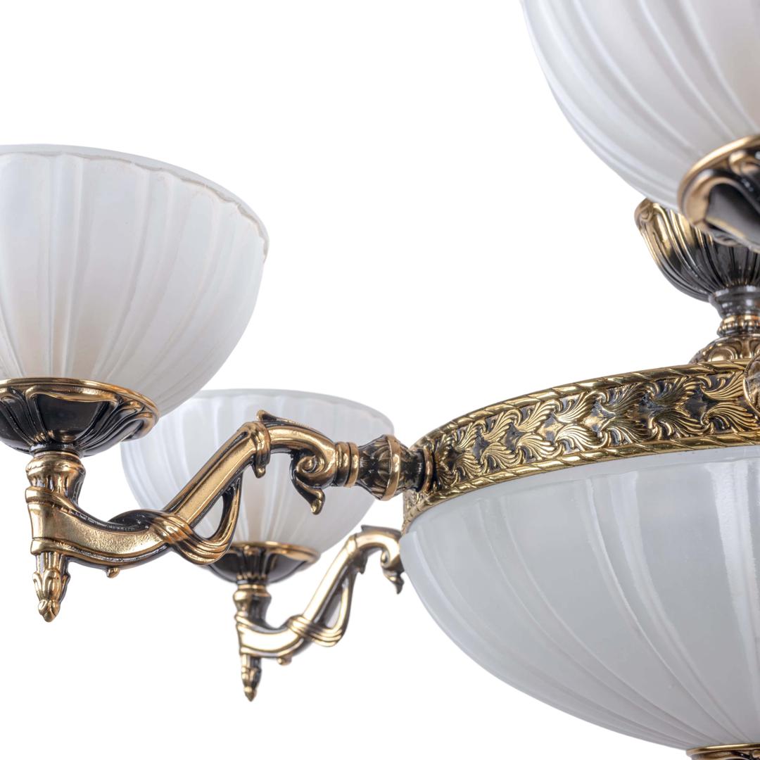 Ambiente - гармония классики и роскоши Откройте для себя коллекцию светильников, где каждая деталь дышит изысканностью и благородством. В основе коллекции — латунные конструкции в двух роскошных вариантах отделки: блестящая бронза и блестящая бронза с патиной. Эти оттенки придают светильникам особый шарм, сочетая в себе глубину истории и современный шик. Люстры из этой серии — настоящие произведения искусства. Их латунные элементы с изящной отделкой дополнены плафонами из белого матового стекла с патиной, которые мягко рассеивают свет, создавая атмосферу уюта и торжественности. Такие люстры станут центральным акцентом в гостиной, столовой или зале для приёмов. Бра из коллекции — это утончённый штрих в оформлении интерьера. Компактные, но выразительные, они идеально дополнят спальню, прихожую или кабинет. Сочетание благородной латуни и матового стекла создаёт гармоничный баланс между роскошью и лаконичностью. Потолочные светильники порадуют своей практичностью и эстетикой. Их лаконичные формы и изысканная отделка делают их универсальным решением для кухонь, коридоров и ванных комнат. Мягкий свет и благородный блеск латуни наполнят пространство уютом. Торшеры из этой коллекции — воплощение элегантности и функциональности. Массивные латунные основания гарантируют надёжность, а плафоны из матового стекла добавляют лёгкости и воздушности. Такие торшеры станут стильным акцентом в зоне отдыха, библиотеке или спальне. Настольные лампы завершают коллекцию, добавляя интерьеру завершённости. Их компактные размеры позволяют разместить лампу на прикроватной тумбе, рабочем столе или журнальном столике. Тёплый, рассеянный свет и изысканный дизайн создадут атмосферу спокойствия и уюта. Эта коллекция — идеальный выбор для ценителей классики с современным акцентом. Латунь с патиной и матовое стекло в сочетании с продуманными деталями превращают каждый светильник в произведение искусства. Превратите свой дом в пространство роскоши и комфорта с этой уникальной коллекцией!