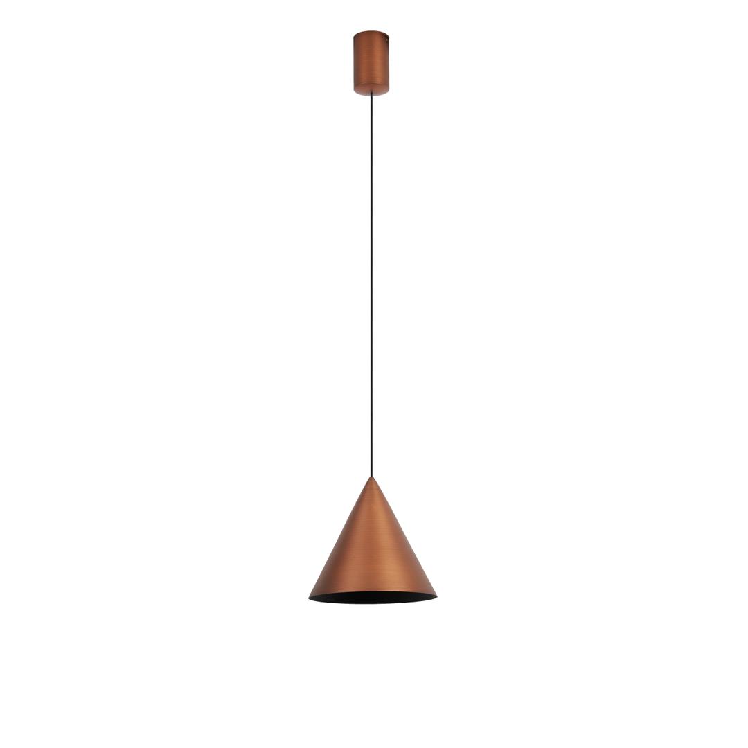 Подвесные светильники коллекции CONO— воплощение современного минимализма: строгие конические или усечённо-конические плафоны из матовой стали создают чёткий нисходящий световой поток и придают интерьеру архитектурную выразительность. Тонкий кабель и компактное потолочное основание подчёркивают лёгкость конструкции. Доступные цвета — от классического чёрного до медного и золотого — позволяют вписать светильники в любой стиль: от минимализма до скандинавского или лофта. Регулируемая высота подвеса даёт возможность точно задать уровень размещения и создать вертикальный акцент в пространстве. Светильники идеально подходят для локального освещения обеденных столов, барных стоек, кухонных островов и рабочих зон. Направленная форма плафона обеспечивает равномерное распределение света без бликов, а совместимость с натяжными потолками делает монтаж простым и безопасным. Используйте CONO в гостиных, кухнях, спальнях, прихожих, а также в кафе, ресторанах, офисах и зонах ожидания. Группировка нескольких светильников создаст ритмичную световую композицию, подчёркивая структуру помещения и выделяя ключевые зоны.