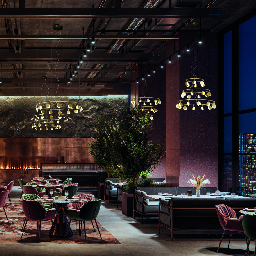 Обаятельная коллекция подвесных светильников SHELL была спроектирована российским дизайнером, Полиной Кузурман. SHELL является крайне изящной коллекцией. Она несет в себе образы вдохновения дизайнера, напоминая форму раскрывающихся ракушек или порхание стаи мотыльков. Тонкие золотые пластины распахнулись, чтобы выпустить мягкий светодиодный свет из основания формы. Множество маленьких ракушек закреплено на широком обруче. Он словно парит в воздухе, благодаря едва заметной системе подвески. Коллекция выполнена в золотой отделке и доступна в нескольких размерах. Разные системы подвесок позволяют адаптировать светильник под задачи вашего интерьера. Самая большая трехъярусная композиция коллекции представляет собой три кольца разного диаметра с разным количеством светодиодов на каждом ярусе. SHELL несомненно поддержит атмосферу комфорта и релакса в пространстве ресторана или отеля. Эта легкая и чувственная коллекция также отлично впишется в домашний интерьер гостиной или столовой.