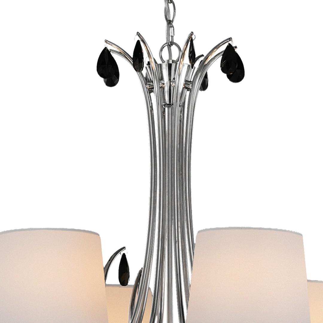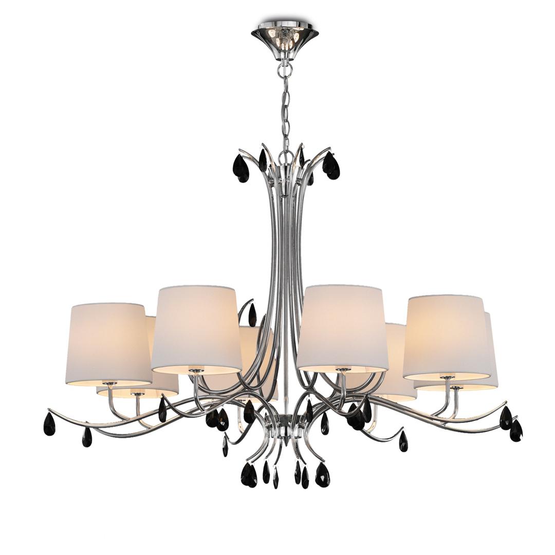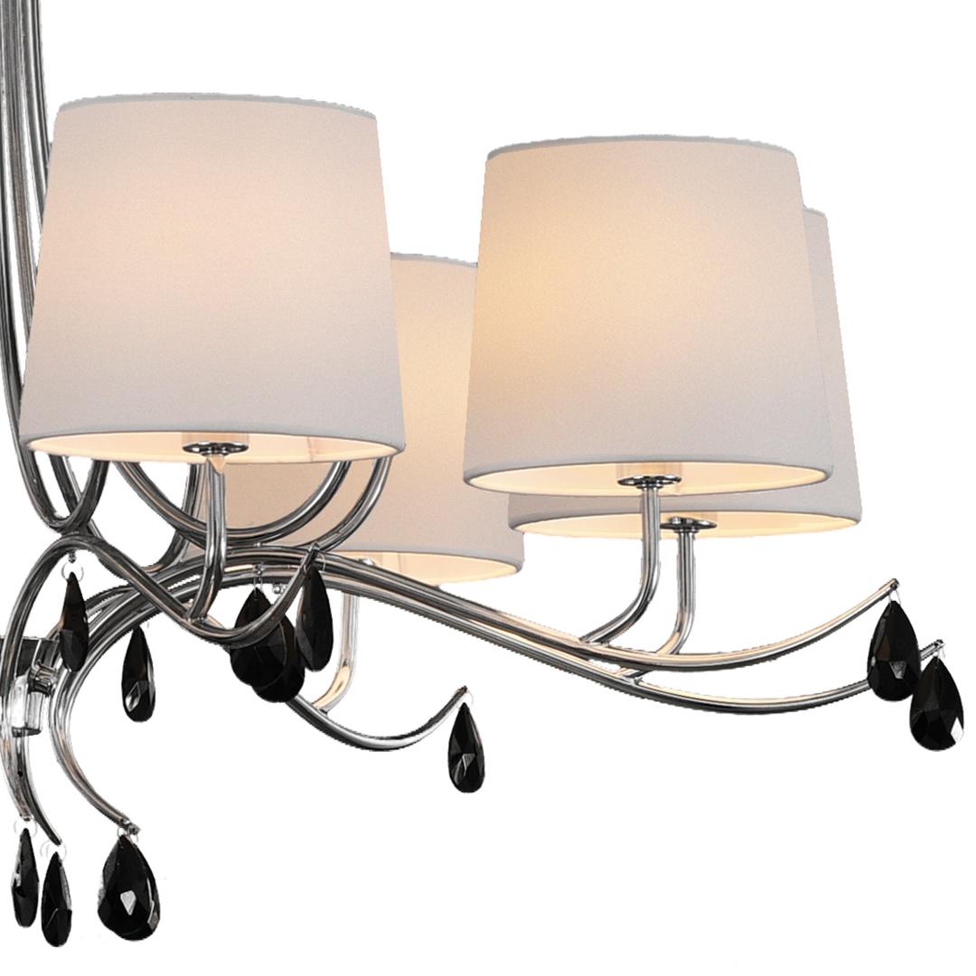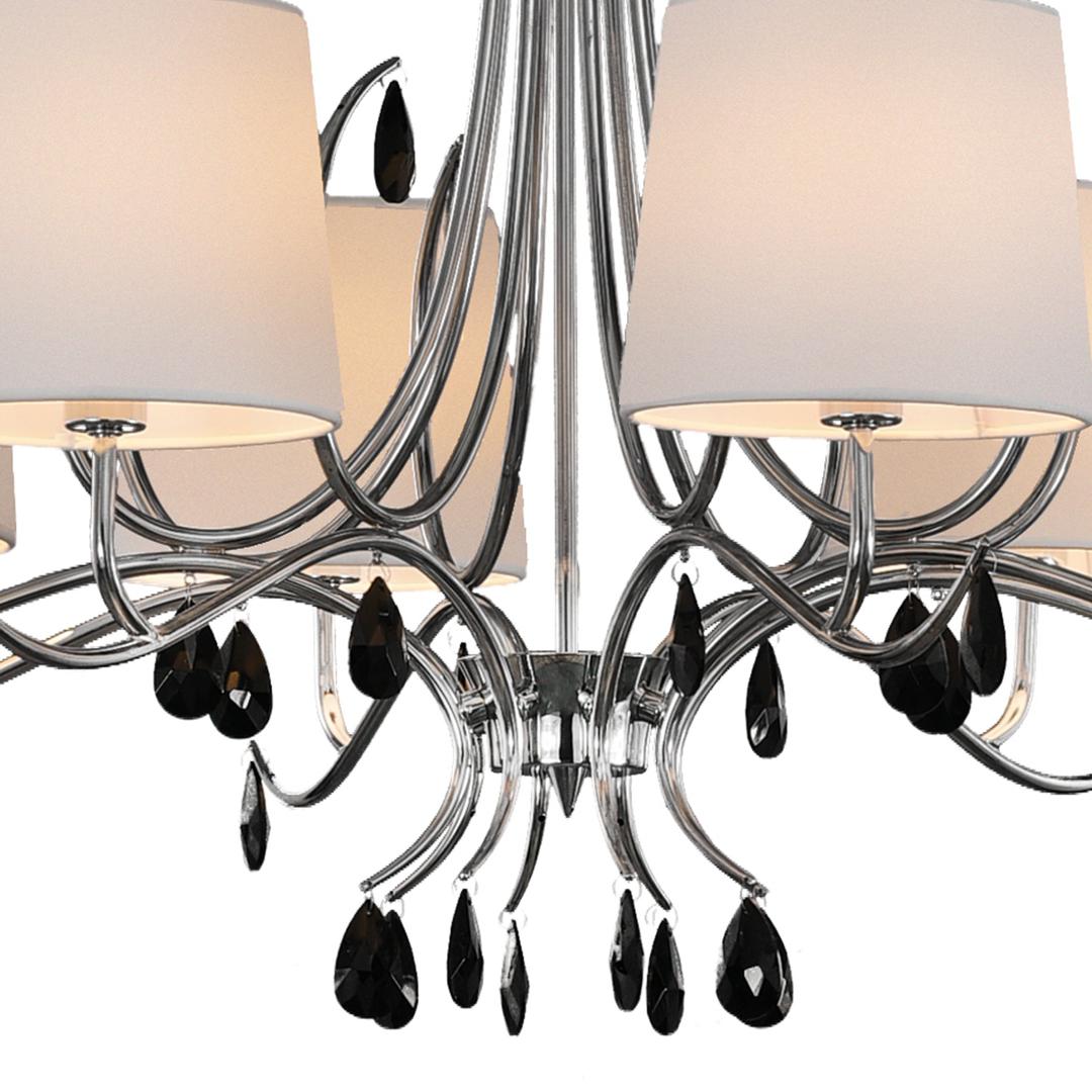 Люстра Andrea, выполненная из металла в современном прочтении классики. Тканевые плафоны выгодно оттеняются конструкцией из античной латуни, украшенной прозрачными хрустальными каплями, так же как вариант в цвете хром с черным хрусталем.