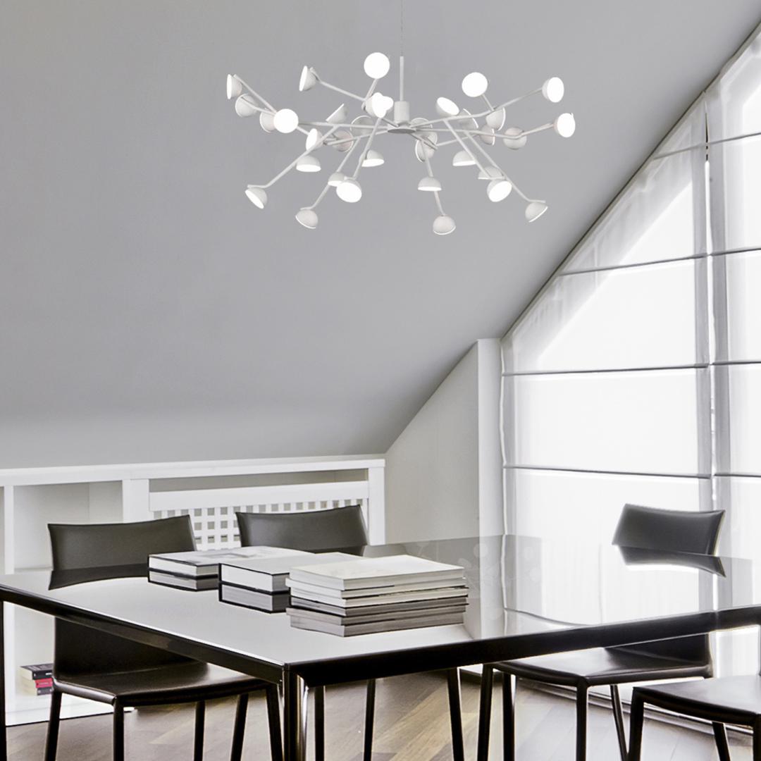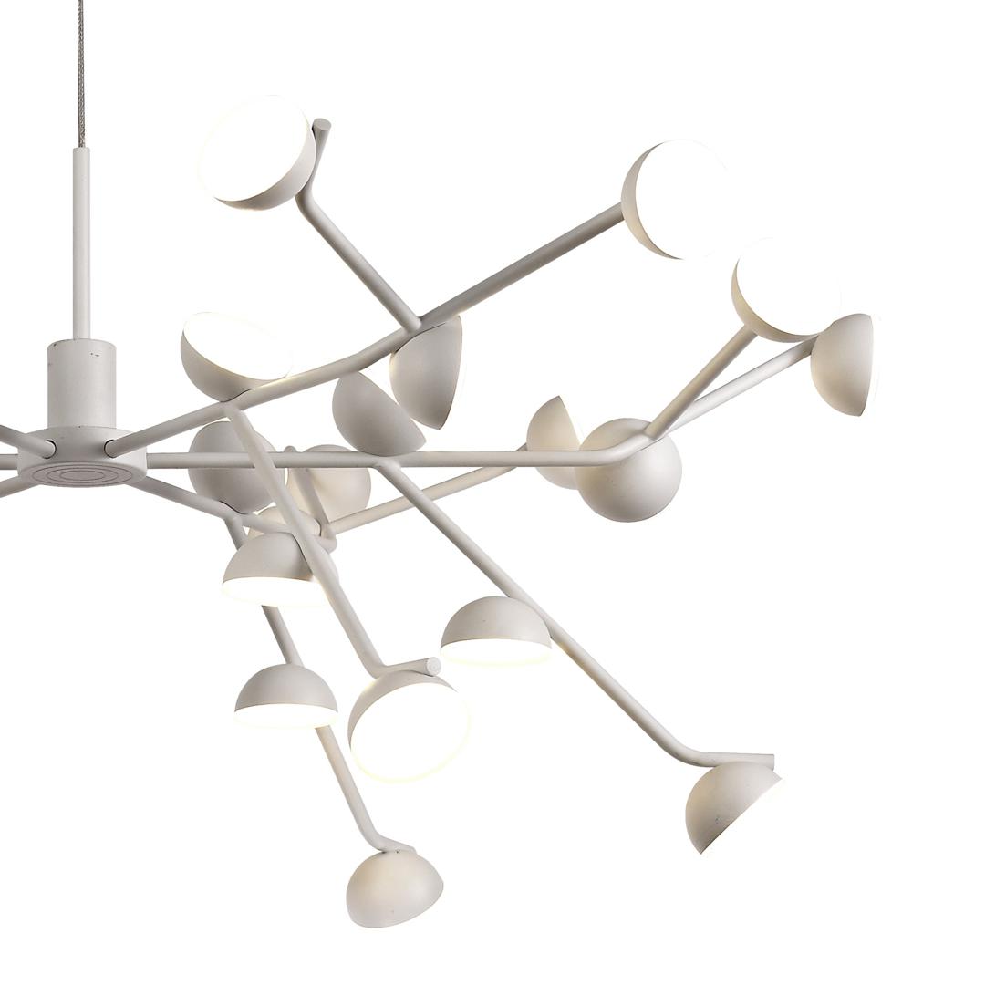 Светильник Adn, выполненный из металла, с анархическим распределением точек освещения, соответствует структуре ДНК, с художественным и визуальным балансом. В качестве основной характеристики, его рамы, декорированные белой эпоксидной смолой, дают возможность замены светодиодных точек, если это необходимо.