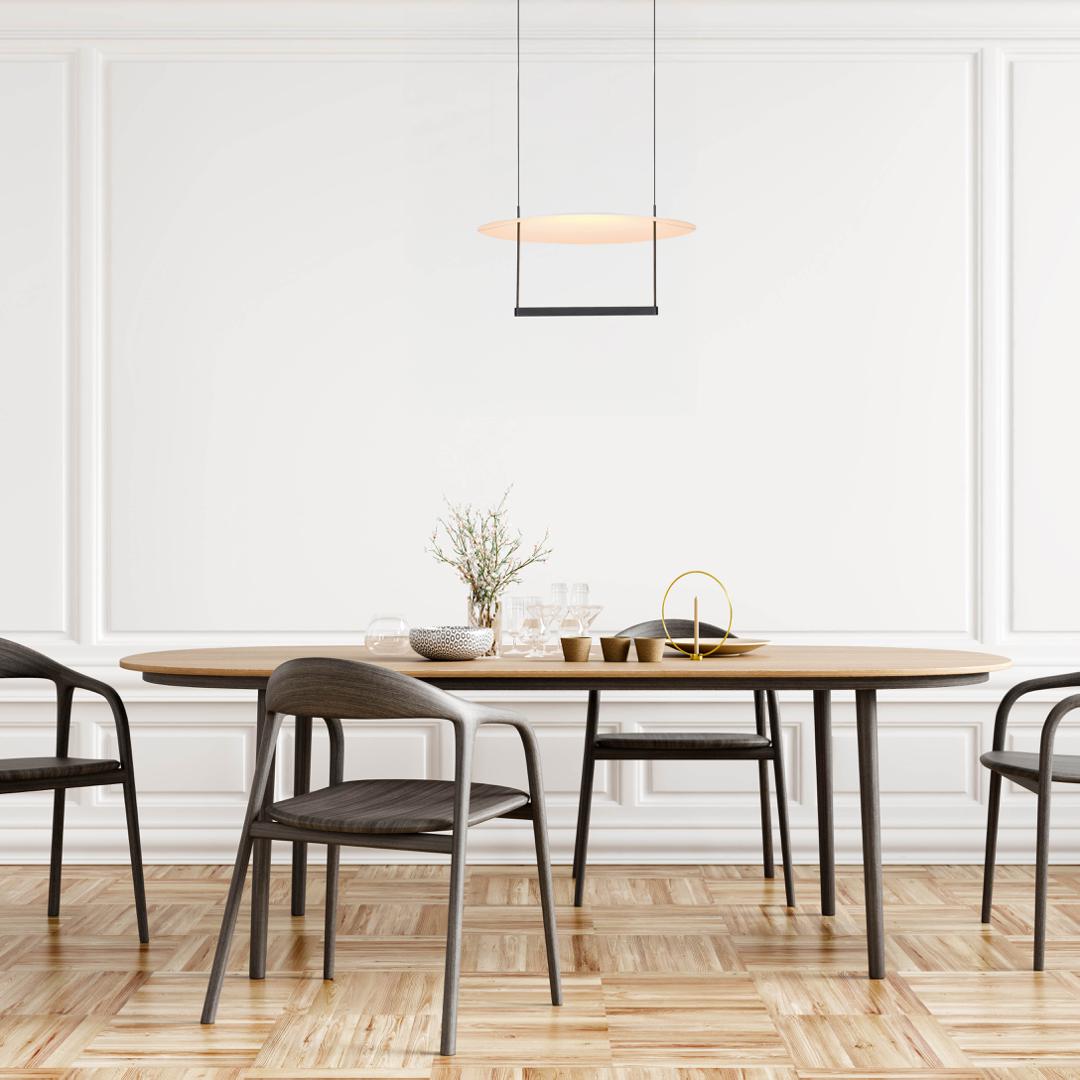 Коллекция подвесных светильников «SUN II» — воплощение современного минимализма: лаконичные круглые формы и строгие геометрические линии делают её идеальным выбором для интерьеров в стиле минимализм, лофт, скандинавский или современная классика. Светильник представляет собой плоский круглый плафон на минималистичной раме. Высококачественные материалы, равномерное рассеивание света без резких теней и гибкая система подвески (с возможностью регулировки высоты) обеспечивают как эстетику, так и функциональность. Нейтральная цветовая гамма (чёрная рама + тёплое свечение плафона) гармонично впишется в любой интерьер, а компактные размеры позволят использовать модель даже в помещениях с невысокими потолками. Идеально подойдёт для столовых, кухонь (создаст уютную атмосферу над обеденным столом), гостиных (станет стильным акцентом), офисов и коворкингов (обеспечит функциональное освещение), а также гостевых зон отелей и ресторанов (добавит изысканности). Преобразите своё пространство с «SUN II» — где простота встречается с качеством и стилем!