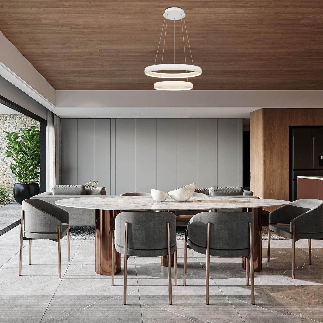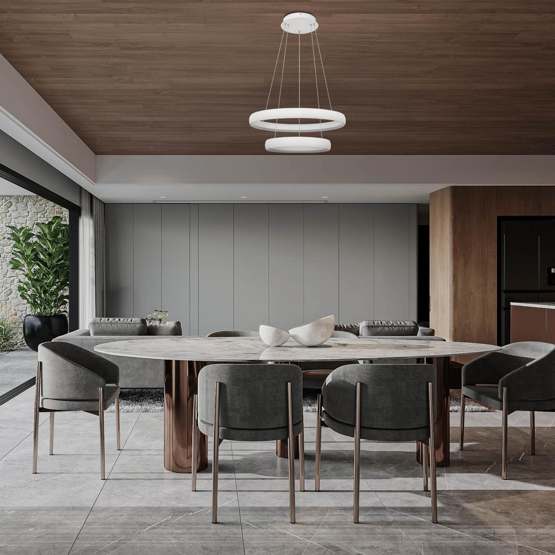 Коллекция подвесных светильников FLATS: лаконичность и свет в гармонии Коллекция FLATS — это воплощение современного минимализма в дизайне осветительных приборов. Элегантные подвесные светильники станут центральным акцентом в любом интерьере: от стильной столовой до современного офиса. Главная особенность коллекции — лаконичные круглые формы, напоминающие плавные орбиты. Светильники состоят из нескольких кольцевых элементов, расположенных на разной высоте, что создаёт эффект многослойности и визуальной лёгкости. Чистые линии и отсутствие лишнего декора делают их идеальным выбором для интерьеров в любом стиле.