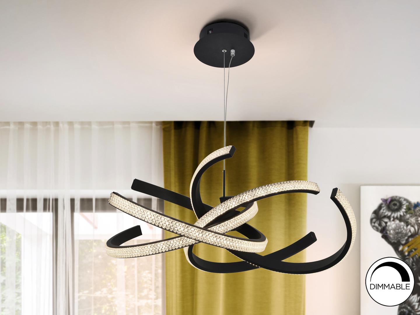 Лампа из металла и алюминия с матово-черной отделкой с пескоструйной обработкой. Диффузоры с прозрачными акриловыми вставками. Светодиод 43 Вт, 2150 лм, 3000 К.