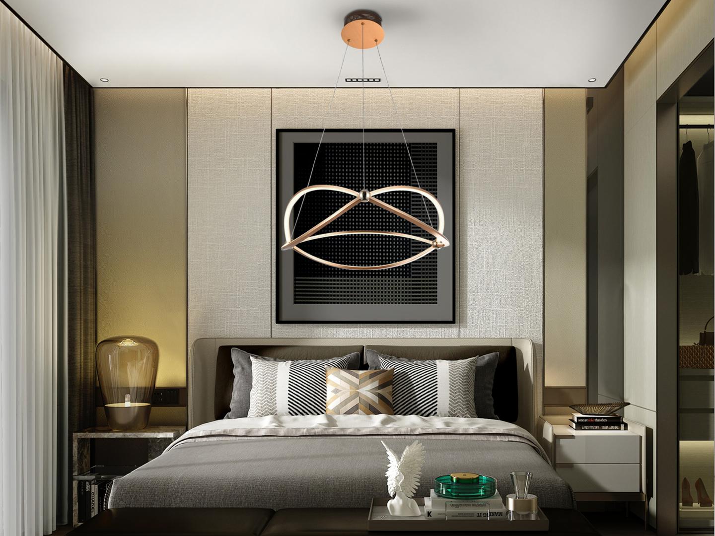 Подвесной светильник LED из алюминия с матовой полировкой с золотистым покрытием. Силиконовые рассеиватели опалового цвета, с регулируемой высотой. 45W LED, 4050 Lm, 3000 K.