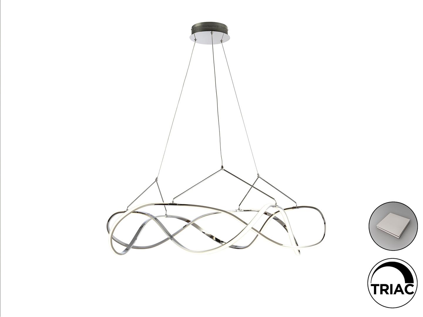 Подвесной светильник LED из алюминия с покрытием "хром". Рассеиватели из силикона опалового цвета, с регулируемой высотой, 63W LED, 5670 Lm, 3000 K. Диммируемый. В комплекте с пультом ДУ.