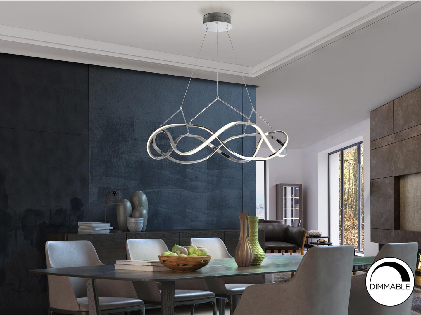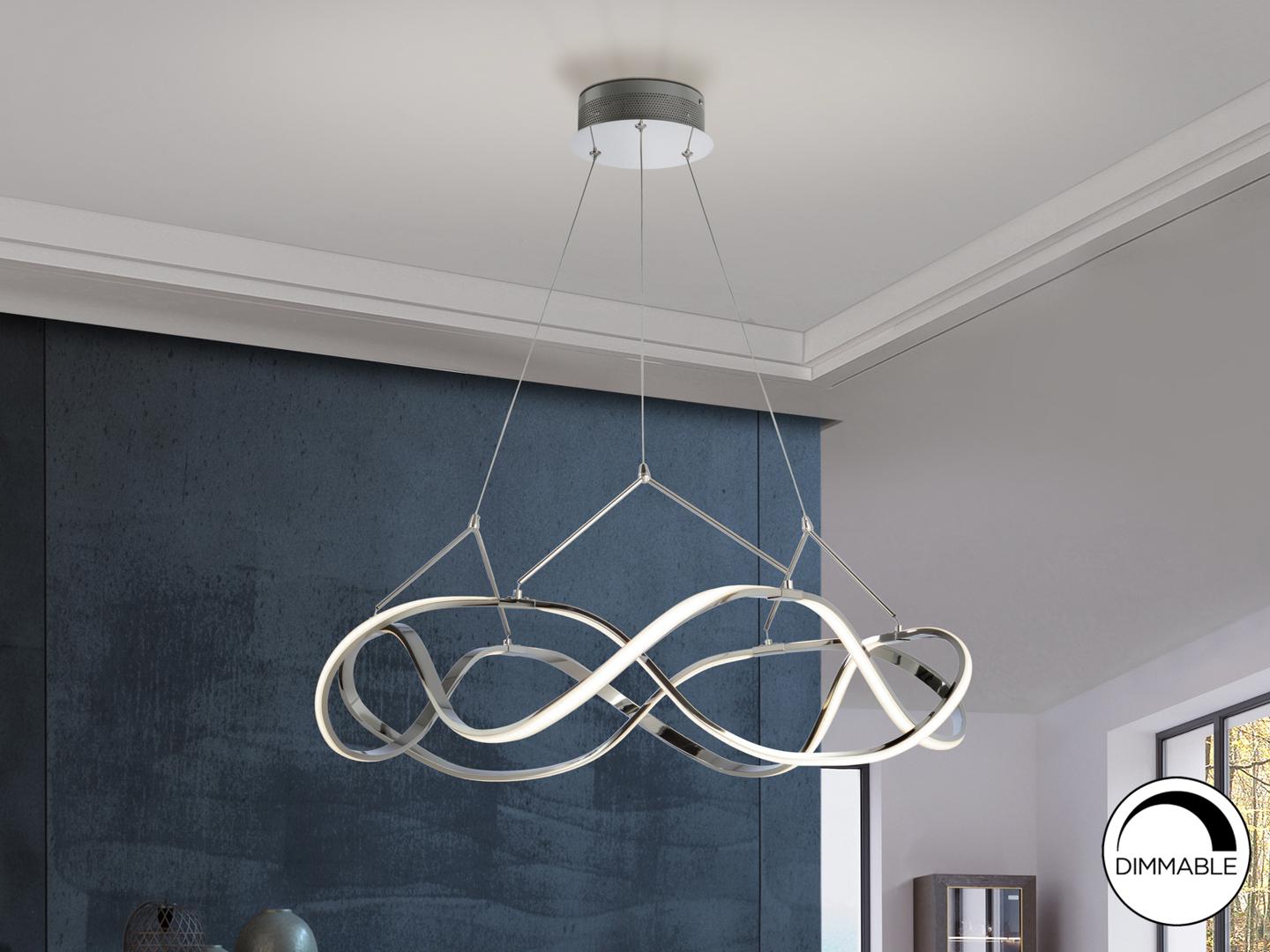 Подвесной светильник LED из алюминия с покрытием "хром". Силиконовые рассеиватели опалового цвета, с регулируемой высотой. 45W LED, 4050 Lm, 3000 K.