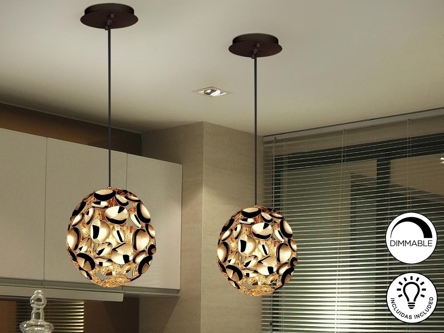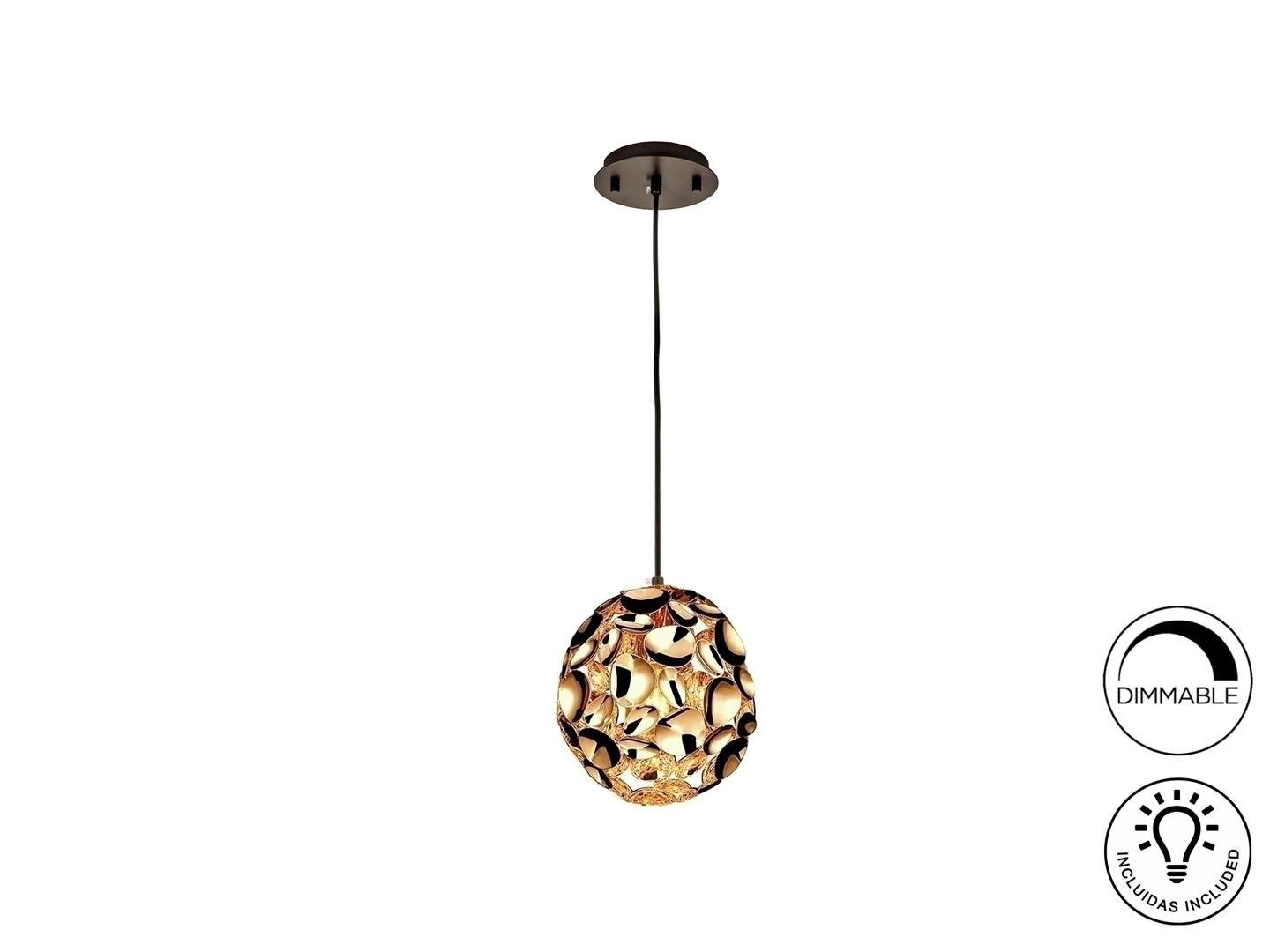 Подвесной светильник с 1 лампой, из металла с покрытием "розовое золото" и с тёмно-коричневым покрытием, акриловый рассеиватель внутри, с регулируемой высотой. Включает 1 светодиод E27 7 Вт. Диммируемый.