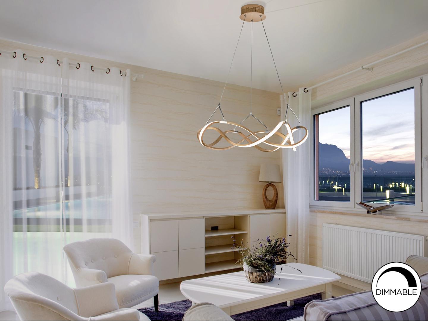 Подвесной светильник LED из аллюминия с золотым покрытием. Акриловые рассеиватели опaлового цвета. С регулируемой высотой. 30W LED, 2700 Lm, 3000 K.