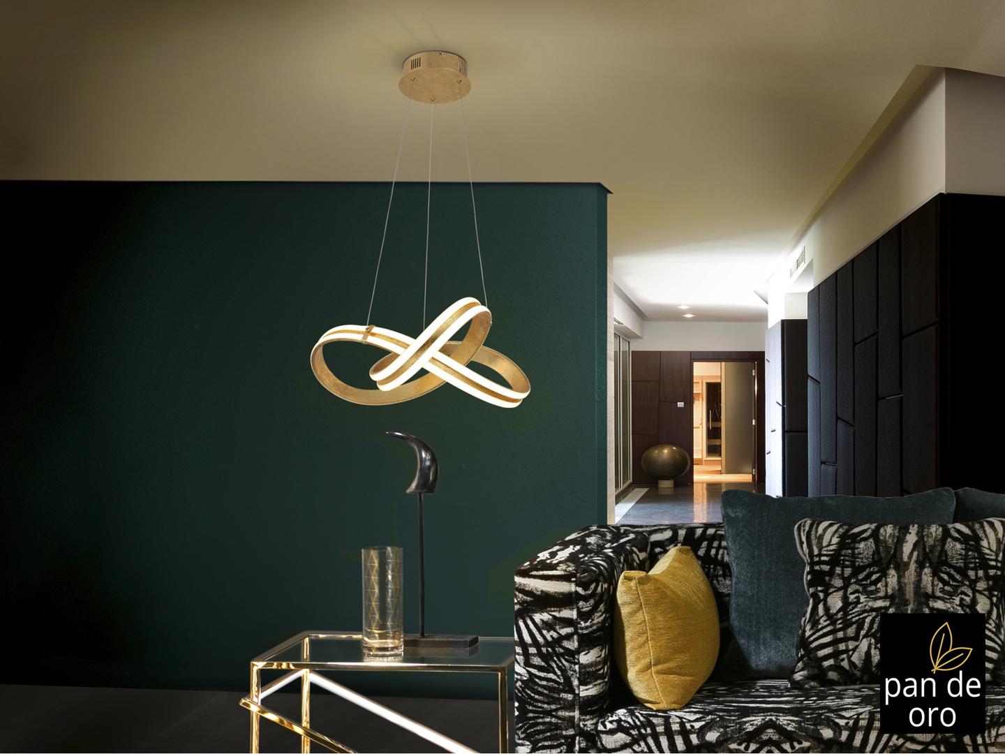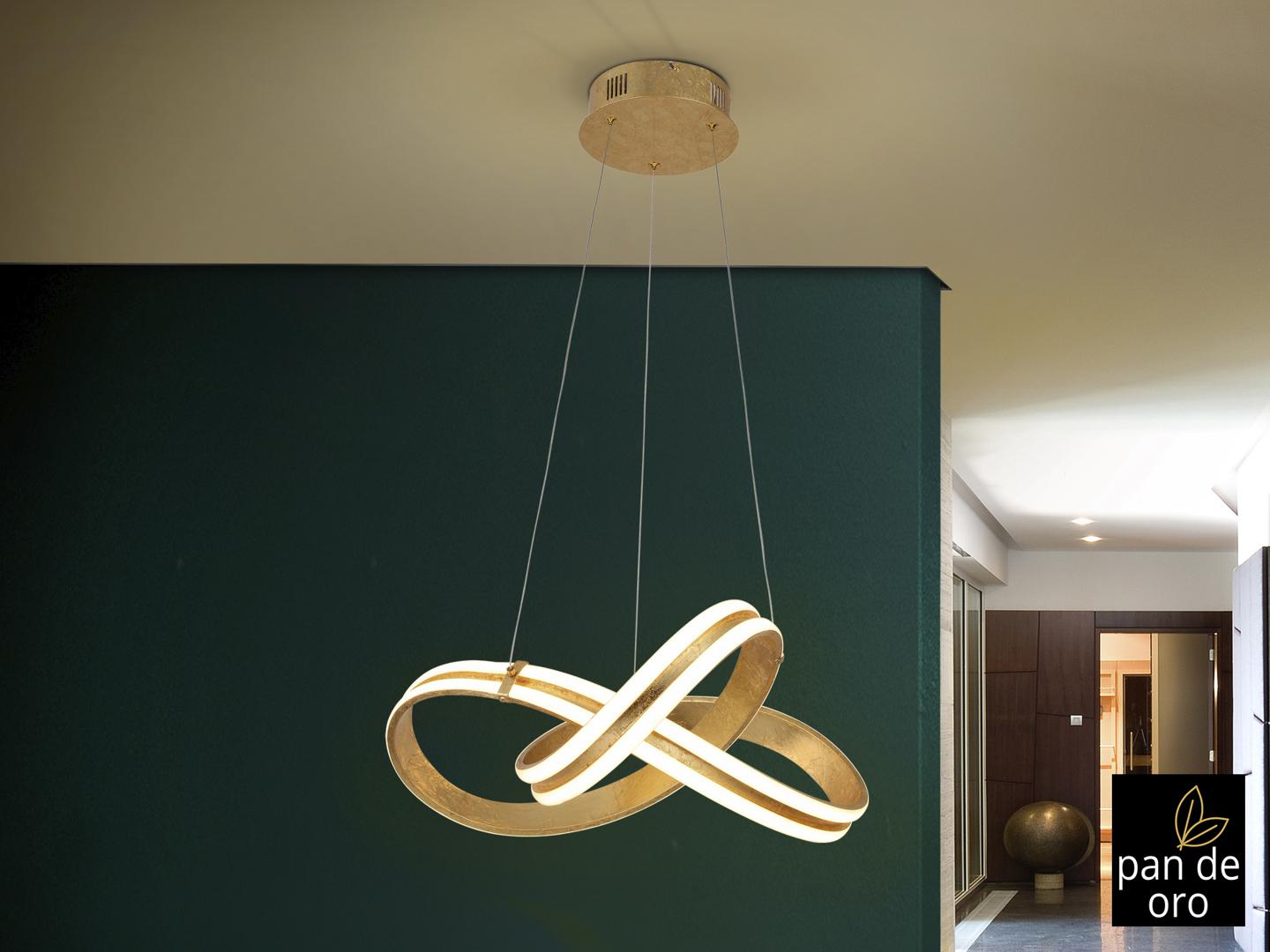 Подвесной светильник из стали и алюминия с покрытием из золотой фольги. Акриловый рассеиватель опалового цвета. 56W LED, 2700 Lm, 3000 K.