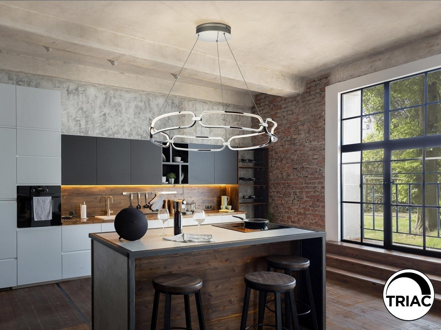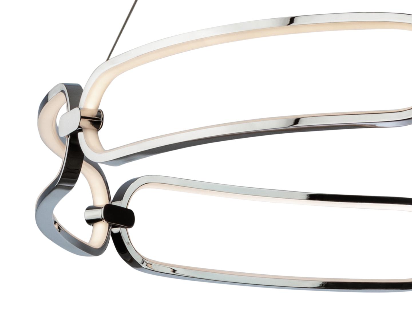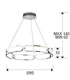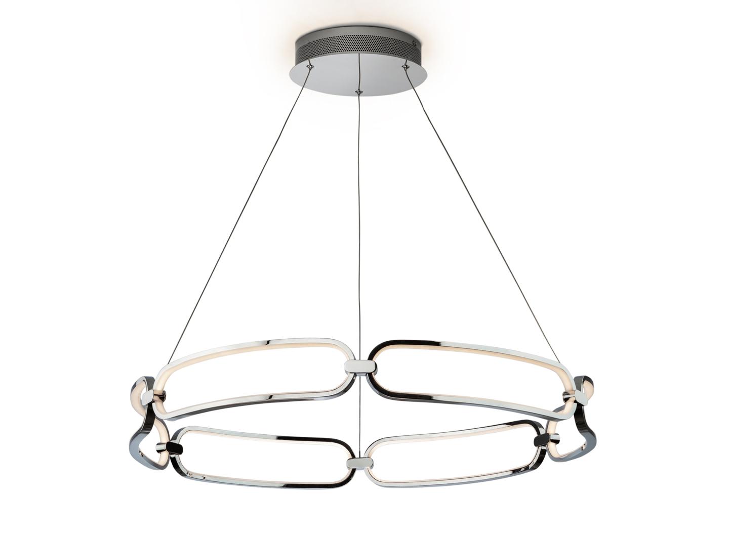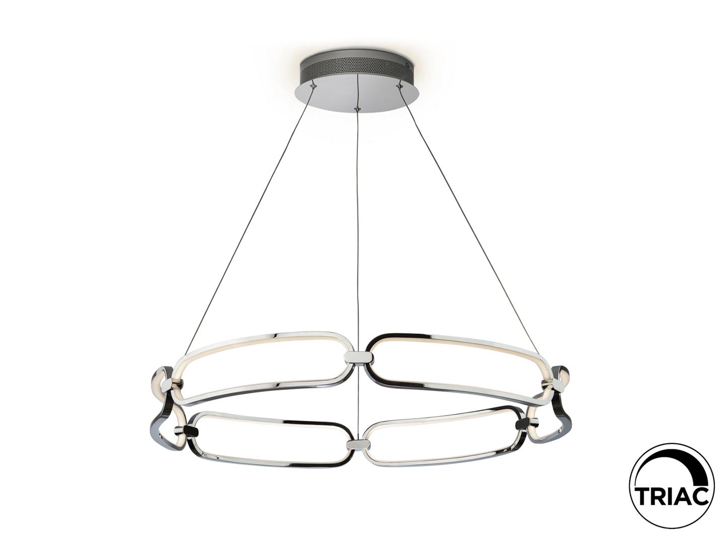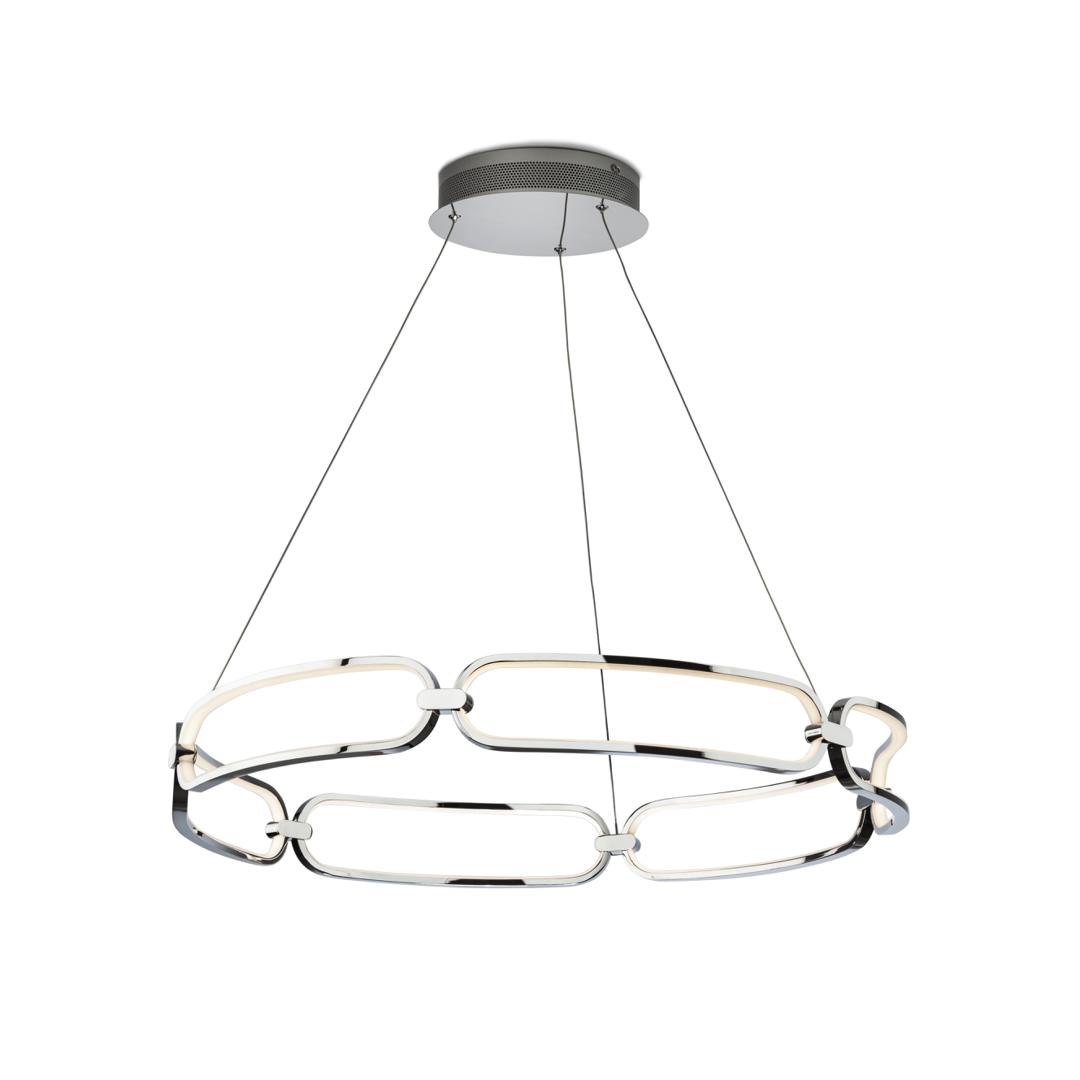 Подвесной светильник LED большого размера, из алюминия с покрытием "хром". Силиконовые рассеиватели опалового цвета. С регулируемой высотой, 65W LED, 5850 Lm, 3000 K.