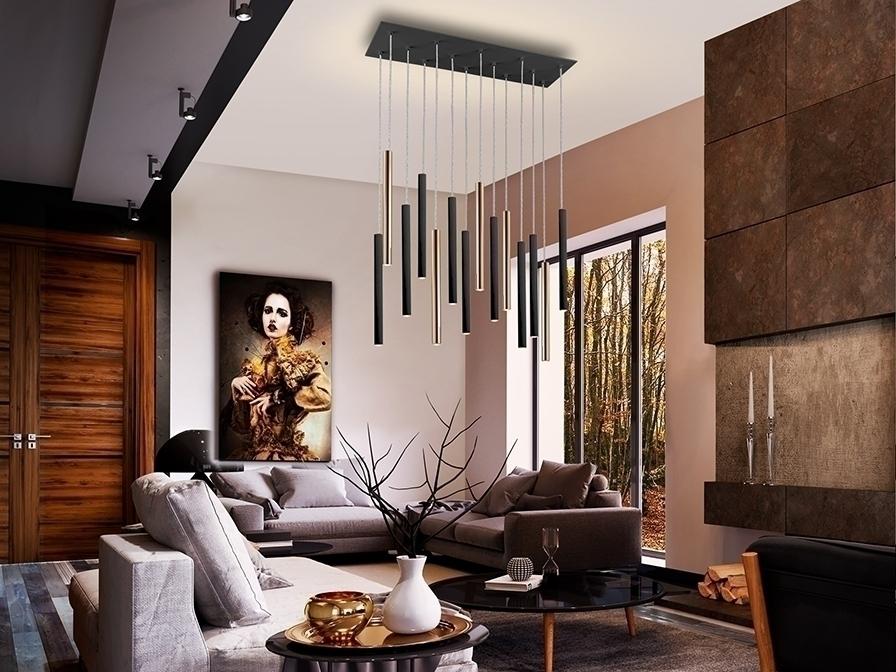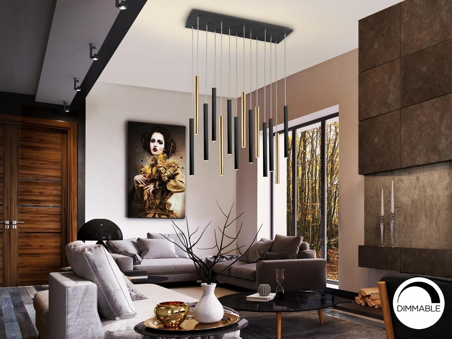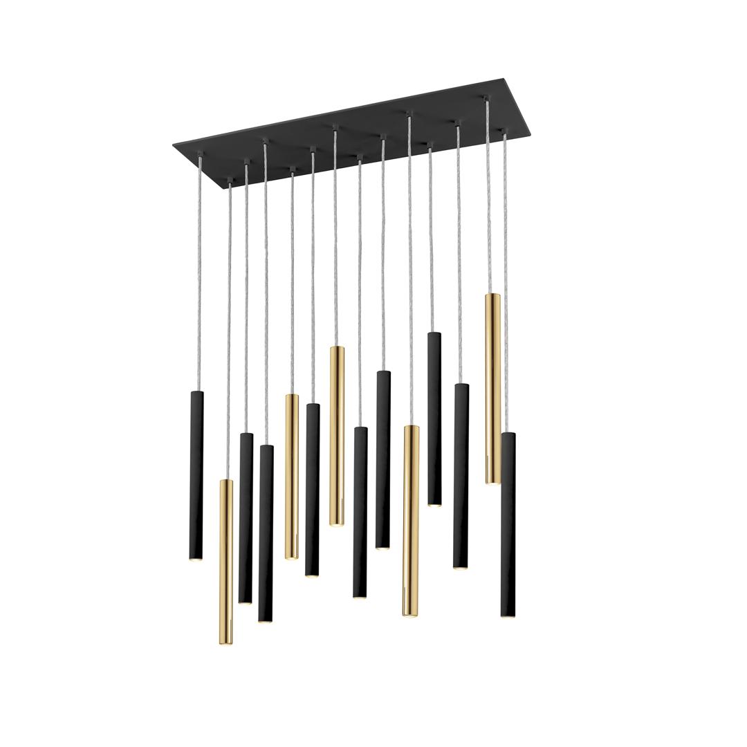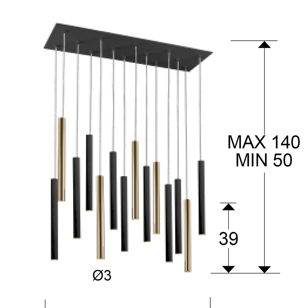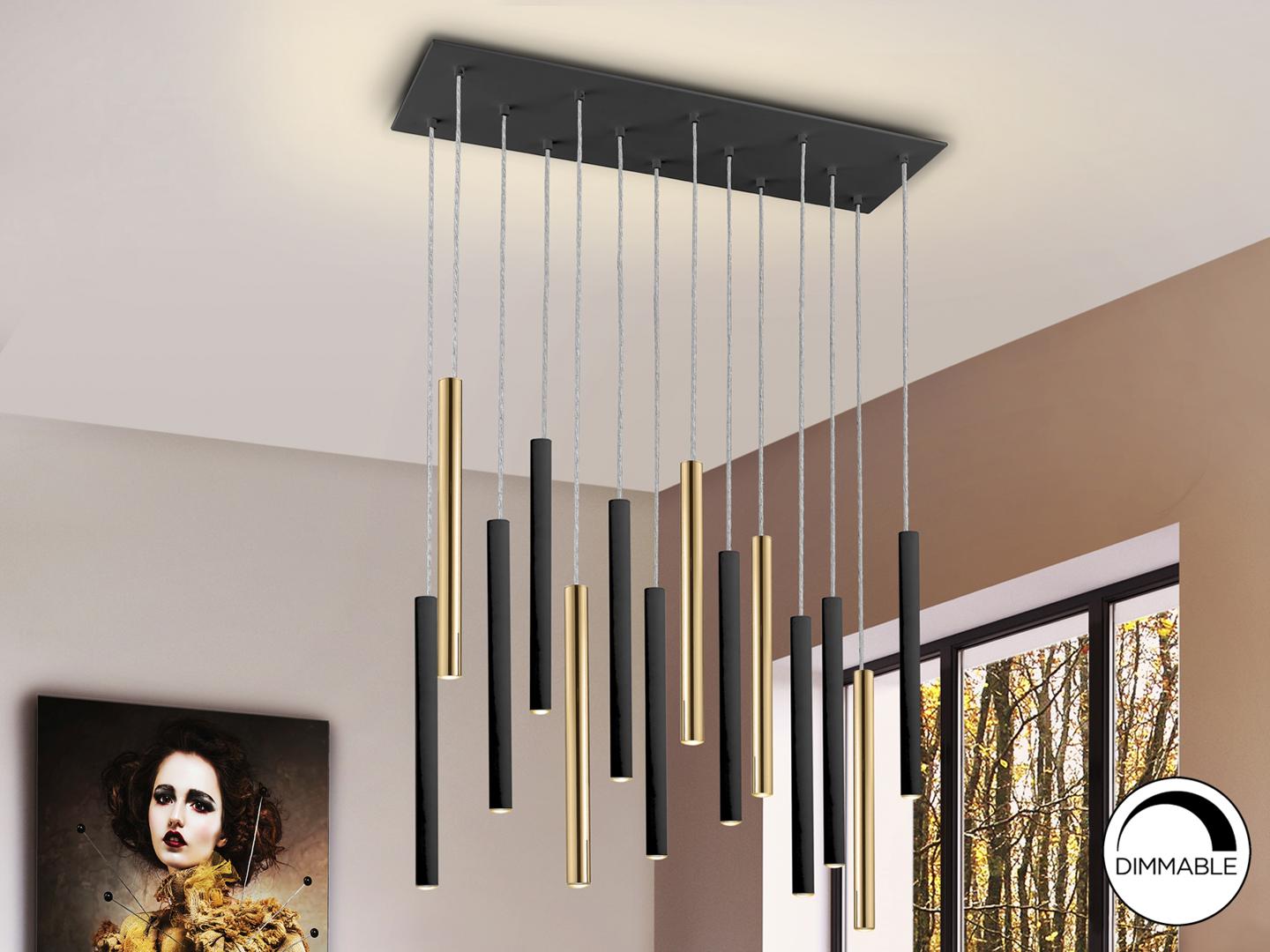 Подвесной светильник LED с 14 лампами из металла с покрытием "блестящее золото" и матовым чёрным покрытием. Акриловый рассеиватель опaлового цвета. 70W LED, 6300 Lm, 3000 K. ДИММИРУЕМЫЙ.
