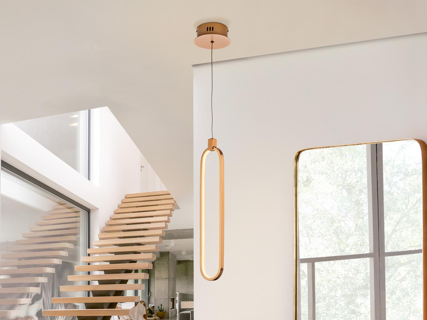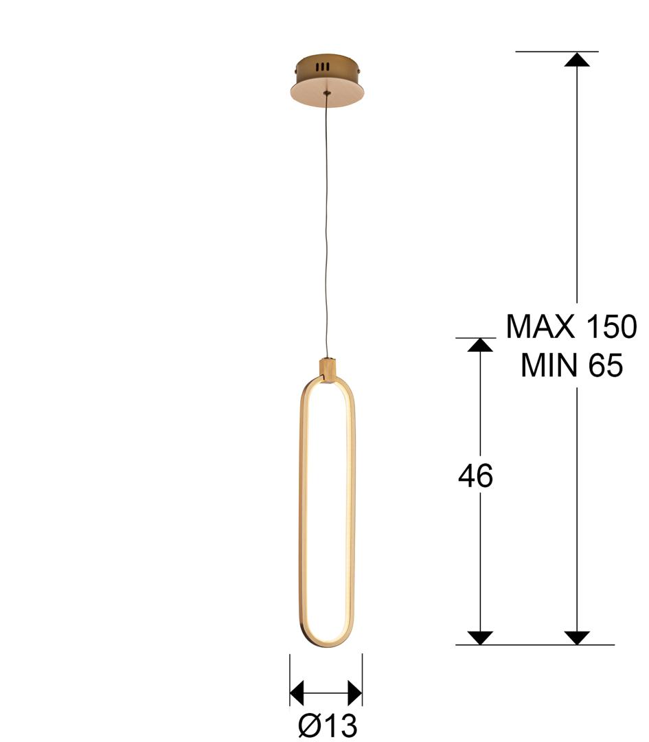 Подвесной светильник LED с 1 лампой, из алюминия с матовым полированным золотистым покрытием. Силиконовые рассеиватели опалового цвета. С регулируемой высотой, 13W LED, 1170 Lm, 3000 K.